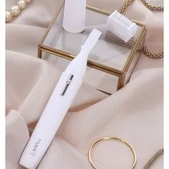 The double-sided electric trimmer is a handy beauty tool that allows you quickly and easily remove the body and facial hair at home or on the go. The trimmer has two blades – the long one for larger areas and the short one for smaller areas and precision trimming. Includes a safety cap and cleaning brush.
