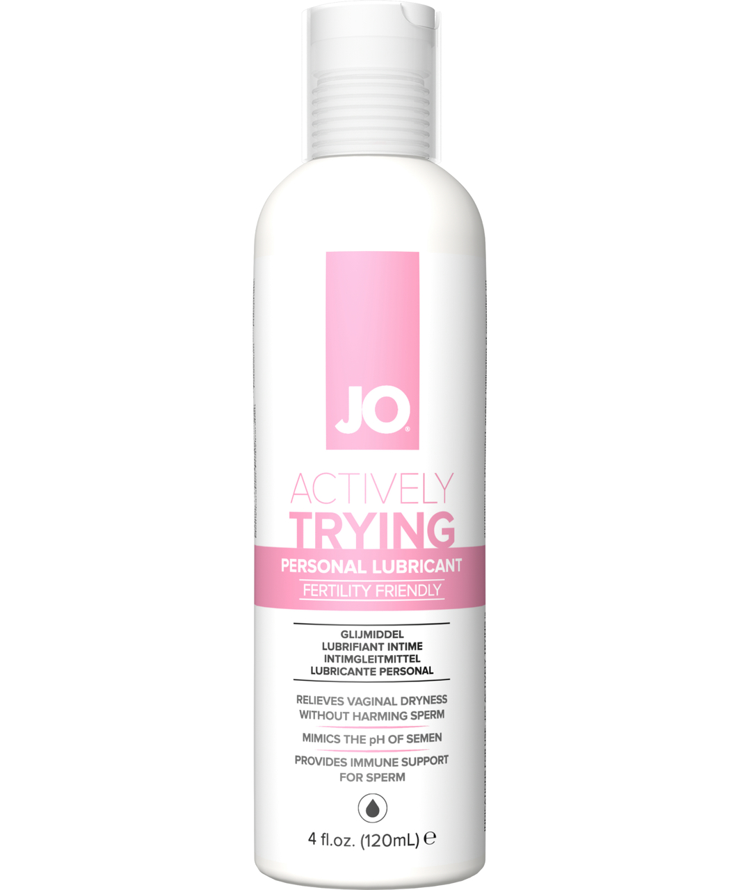 JO Actively Trying lubricant creates a healthy environment for sperm with its optimized pH level that mimic the alkaline balance of semen and fertile cervical mucus. Water-based and silky smooth, it allows his and hers fluids to mix freely without interference from competing elements, not only encouraging sperm to complete their journey to conception, but also enhancing the overall experience with a natural sensual feel.