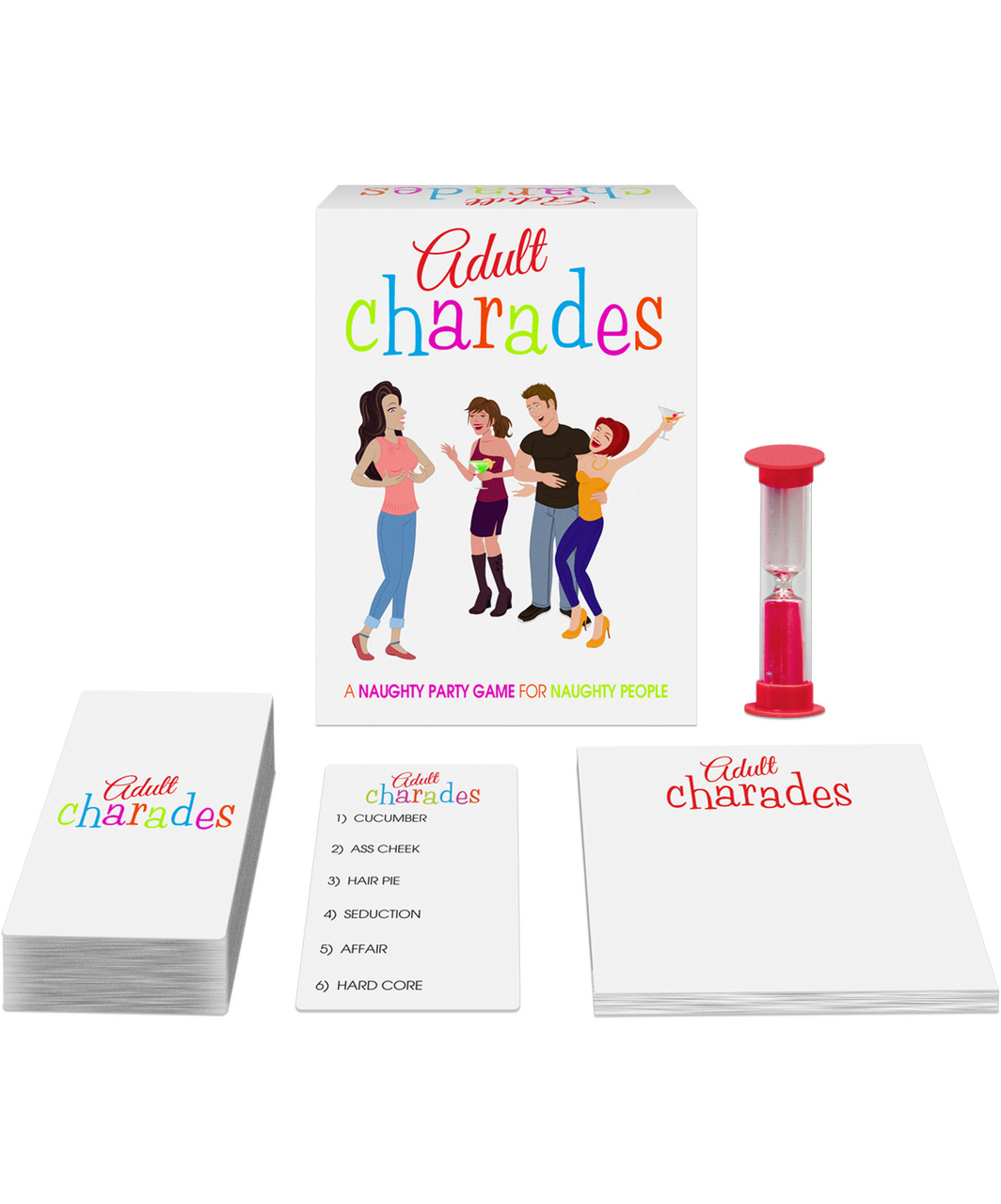 A naughty party game for naughty people! An adults only version of the classic party game. Take turns acting out things like “Horny Devil”, “Mr. Woodcock”, and “The Little Man in the Boat” while teammates try to guess as many answers as possible within a minute. Game Includes: 80 cards with 480 charades, score sheets in a pad, and a one-minute timer.
