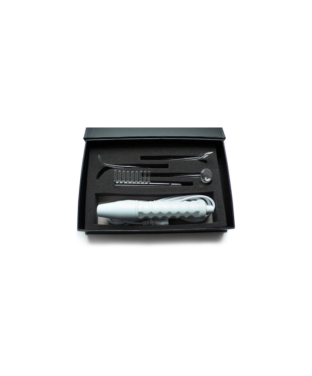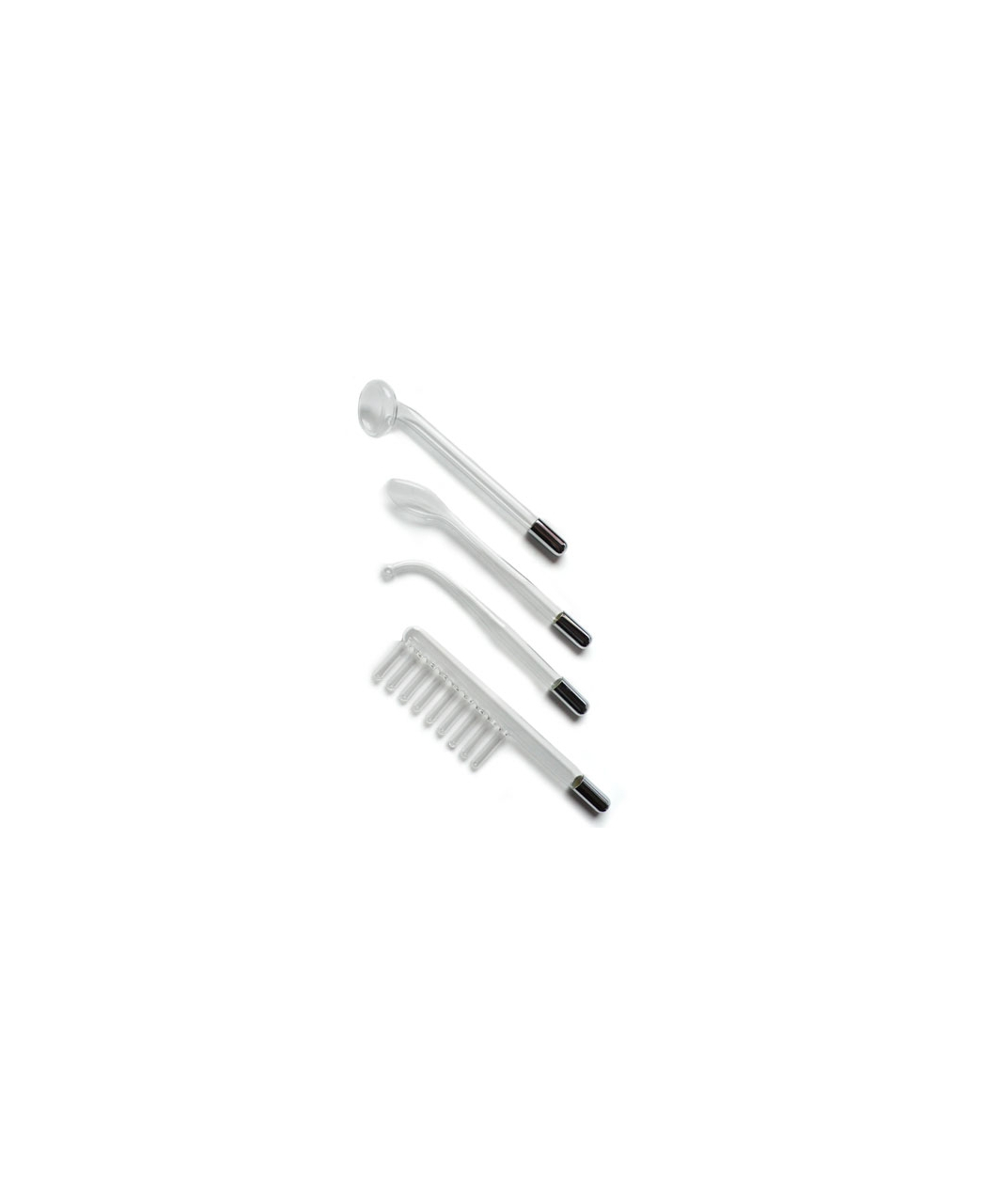 Spark up your sexlife with this fantastic new violet wand – finally one which is easy to use and affordable! The Neon Wand is a popular device from KinkLab from Los Angeles that creates an electrical discharge across the surface of the skin. The electricity produces sensations over a broad range, from a pleasurably warm tingling, to more intense, focused sensation that some find painful. Two things control the level of sensation. The first of these is the setting you choose on the Wand itself, which has a dial to adjust the intensity of the output. The second factor that controls the sensation level your partner experiences is the electrode you choose. This kit contains four different glass electrodes: a Comb, a Mushroom Tube, a 90 degree-angled Probe and a Tongue Tube. The different gases caught inside the hollow glass electrodes light up in various colors: red, blue or purple, so choose the kit with your preferred color. All different electrodes have a different surface area that contacts the skin and as a result, they provide a wide range of sensations and sampling them all is part of the enjoyment of this device. Electric ray wands were originally developed in the early 20th century as quack medicine cure-alls. Vintage ray equipment are collectors’ items today… What makes this Neon Wand different?