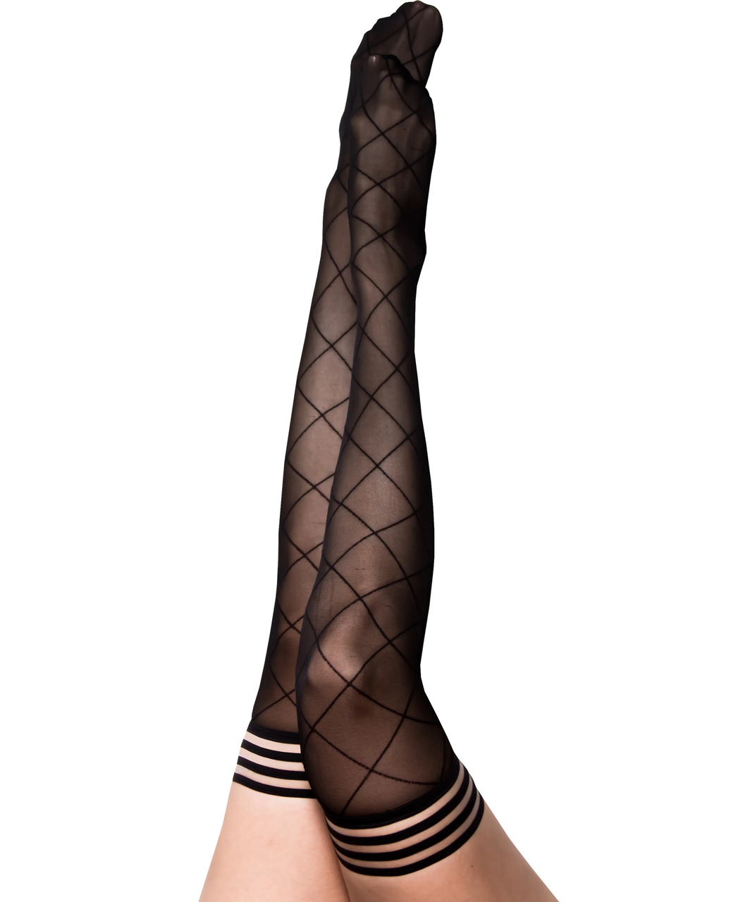 Kix’ies bold, beautiful, and always in style, sheer diamond pattern. Kix’ies black hold-up stockings are a day to night wardrobe essential, and the perfect way to kick it up a notch with any outfit. Kix’ies thigh-highs are designed for all-day wear, with a no-slip-grip. We offer Petite to Plus Size stockings and are the #1 thigh-highs that actually stay up!