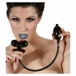 Black butterfly shaped latex gag, inflatable with a hand ball pump.