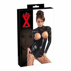 Long-sleeved latex body with open bust. Zipper in the back and in the crotch. Black. 100% latex.