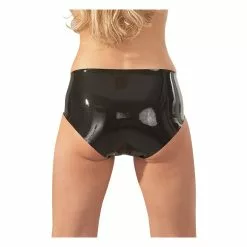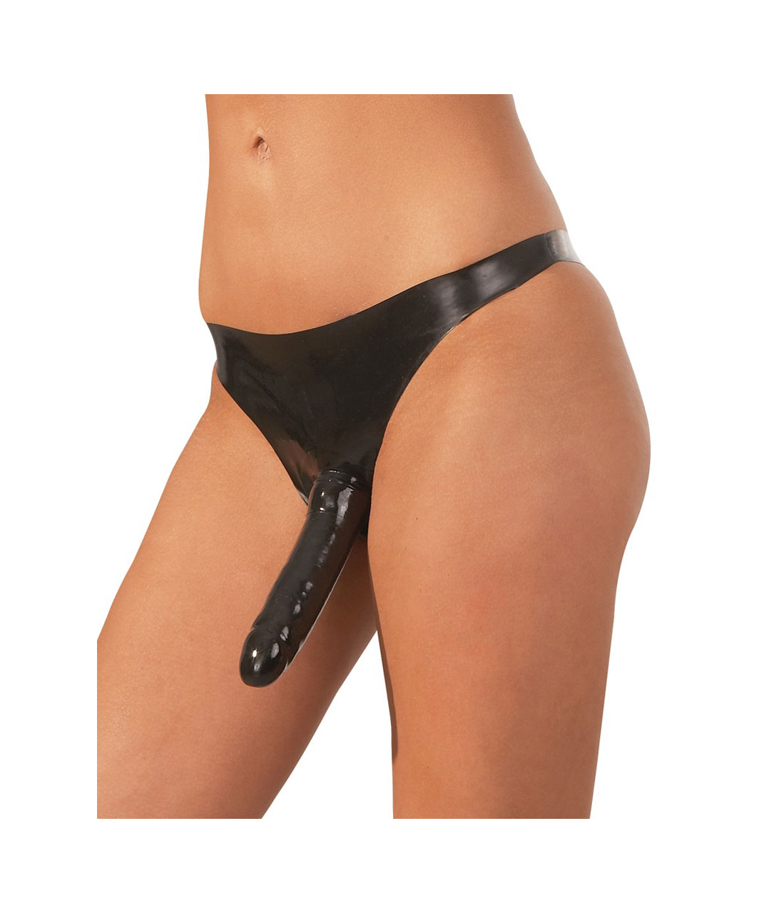 Black latex briefs with two dildos – one is on the inside for vaginal pleasure, and one is outside – to give the pleasure to your partner.