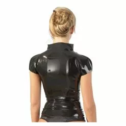 Long black latex shirt with short sleeves and zipper in the front to perfectly accentuate your curves.