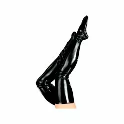 Dipped black latex thigh highs. Skin-tight fit with fully moulded feet. Without shoes.