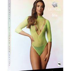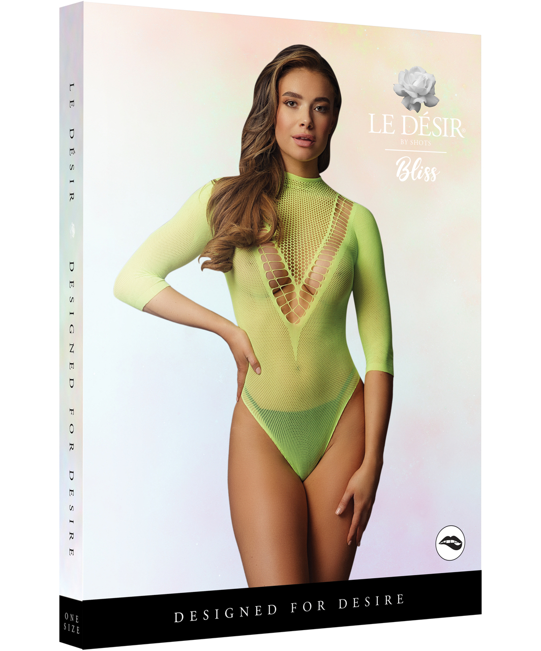 Neon green net bodysuit with round cutout on the back. Unisize (S–L).