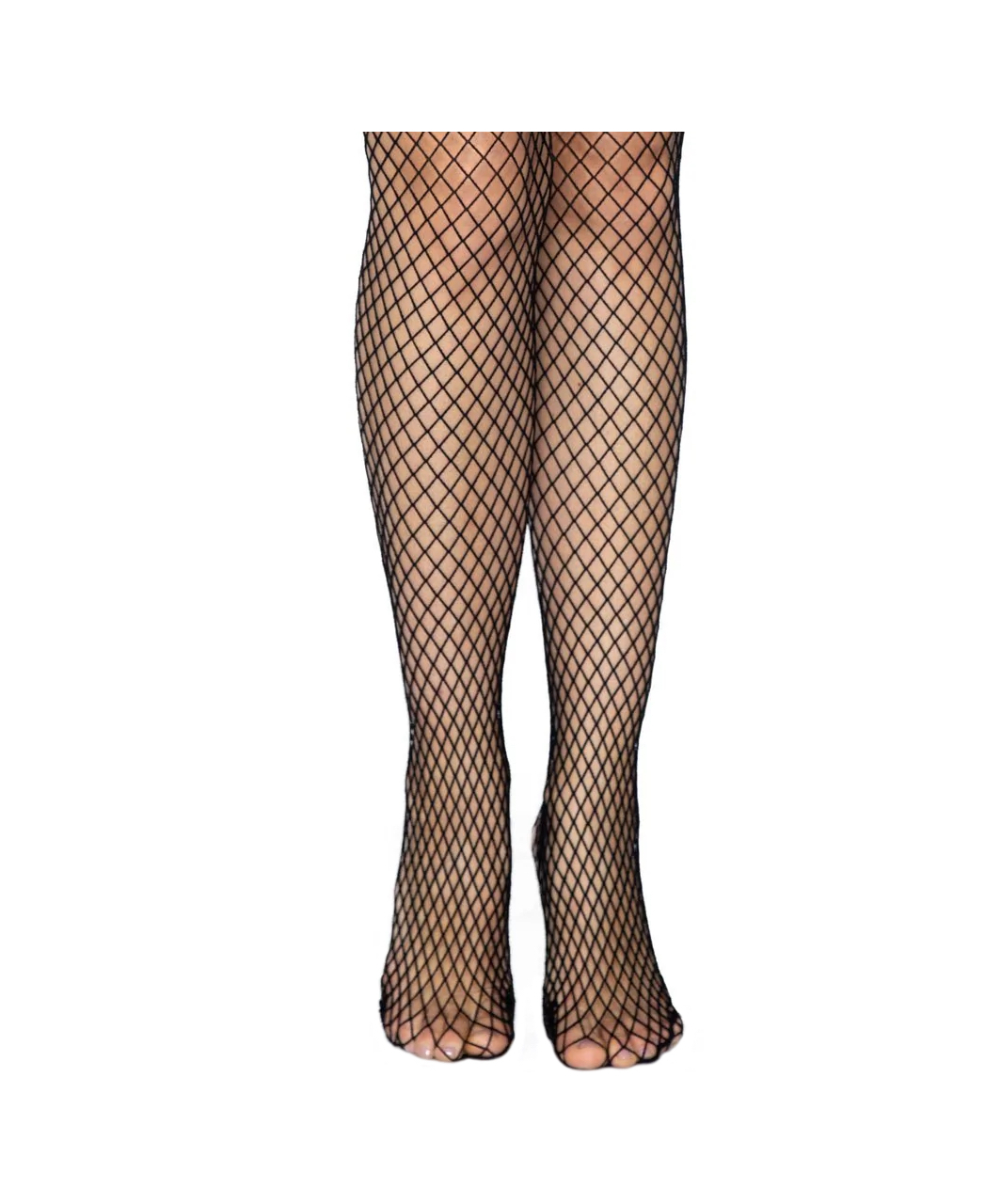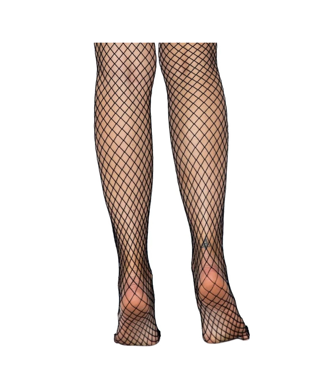 Black net garter belt with matching stockings. Suspenders are adjustable. Unisize (S–L).
