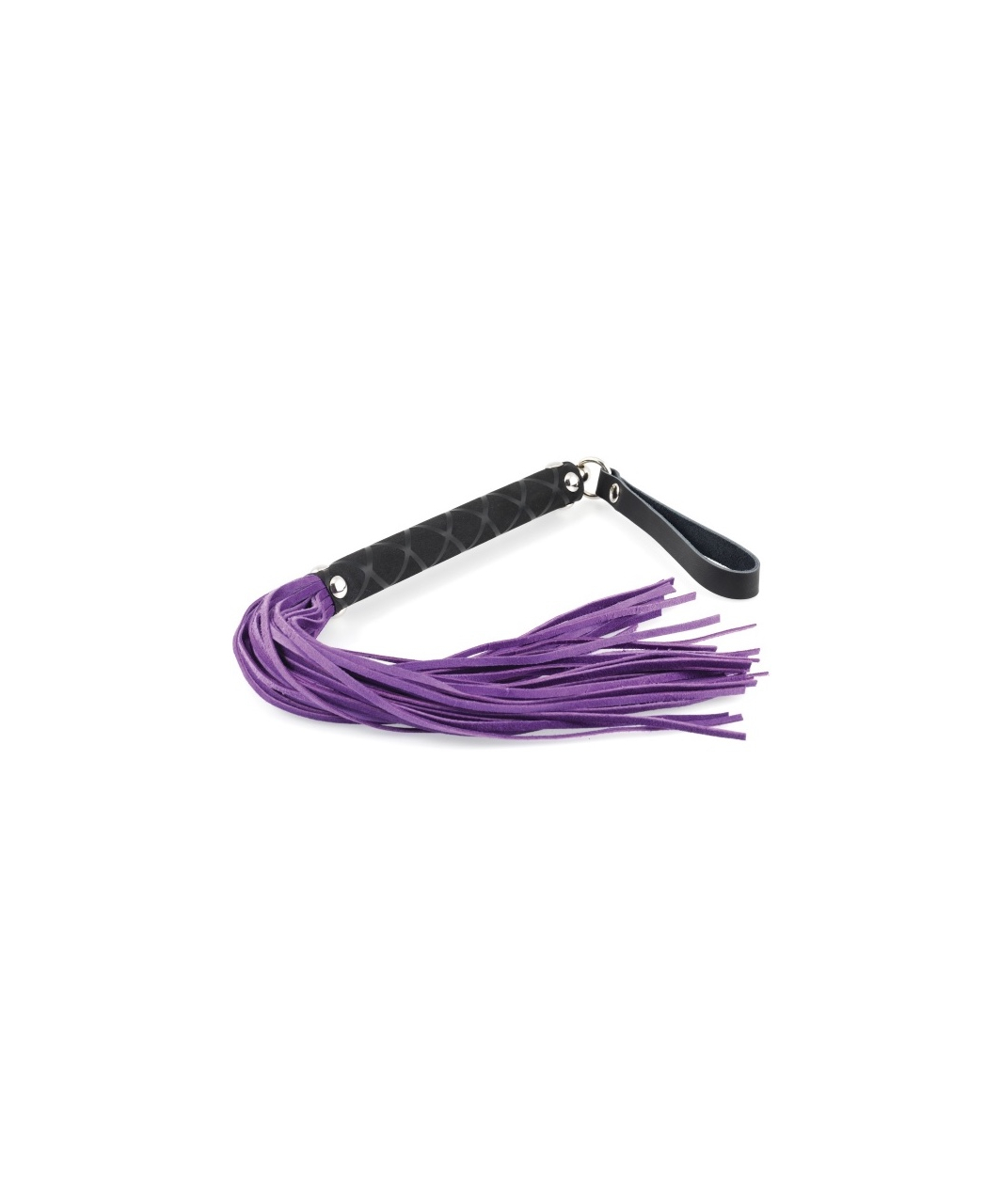 Purple suede whip with black leather handle and loop for more comfortable handling.