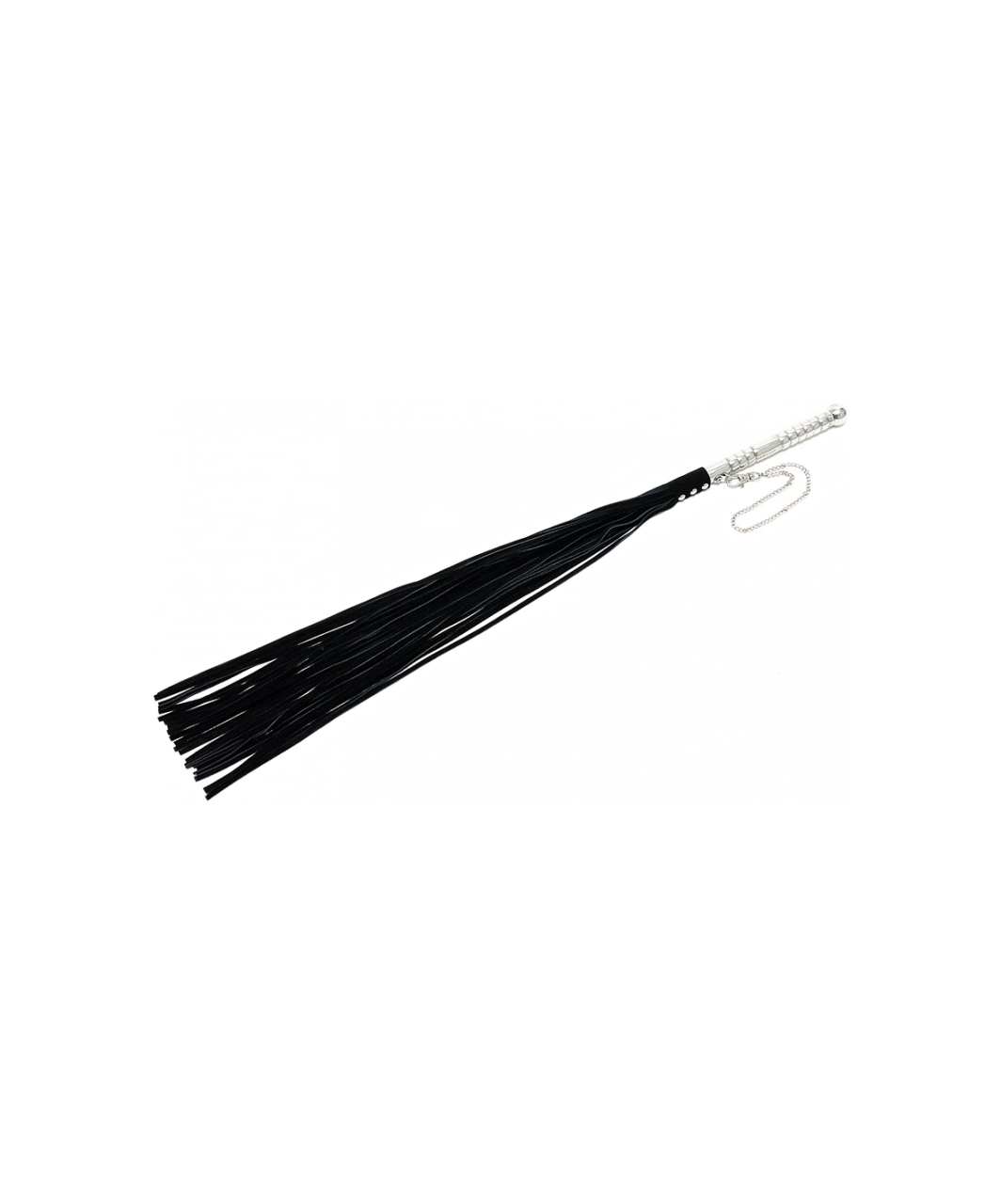 Soft suede whip with embossed metal handle. With a handy chain carabiner – for convenient use and hanging of the whip.