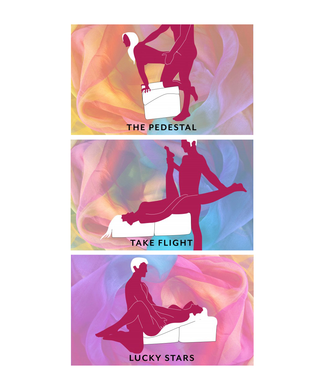 The black flip ramp is designed for best position sex and is a love cube if stacked or a curvy body shape playground if unfolded. The cube allows for a deep doggy style. The microfibre cover is machine washable. The 100% polyester inside lining keeps liquids outside the polyurethane foam core. Folded cube: 48 x 48 x 38 cm. Unfolded: 94 x 48 x 30 cm. Package 66 x 25 x 21 cm. Approx. weight: 4,5 kg.