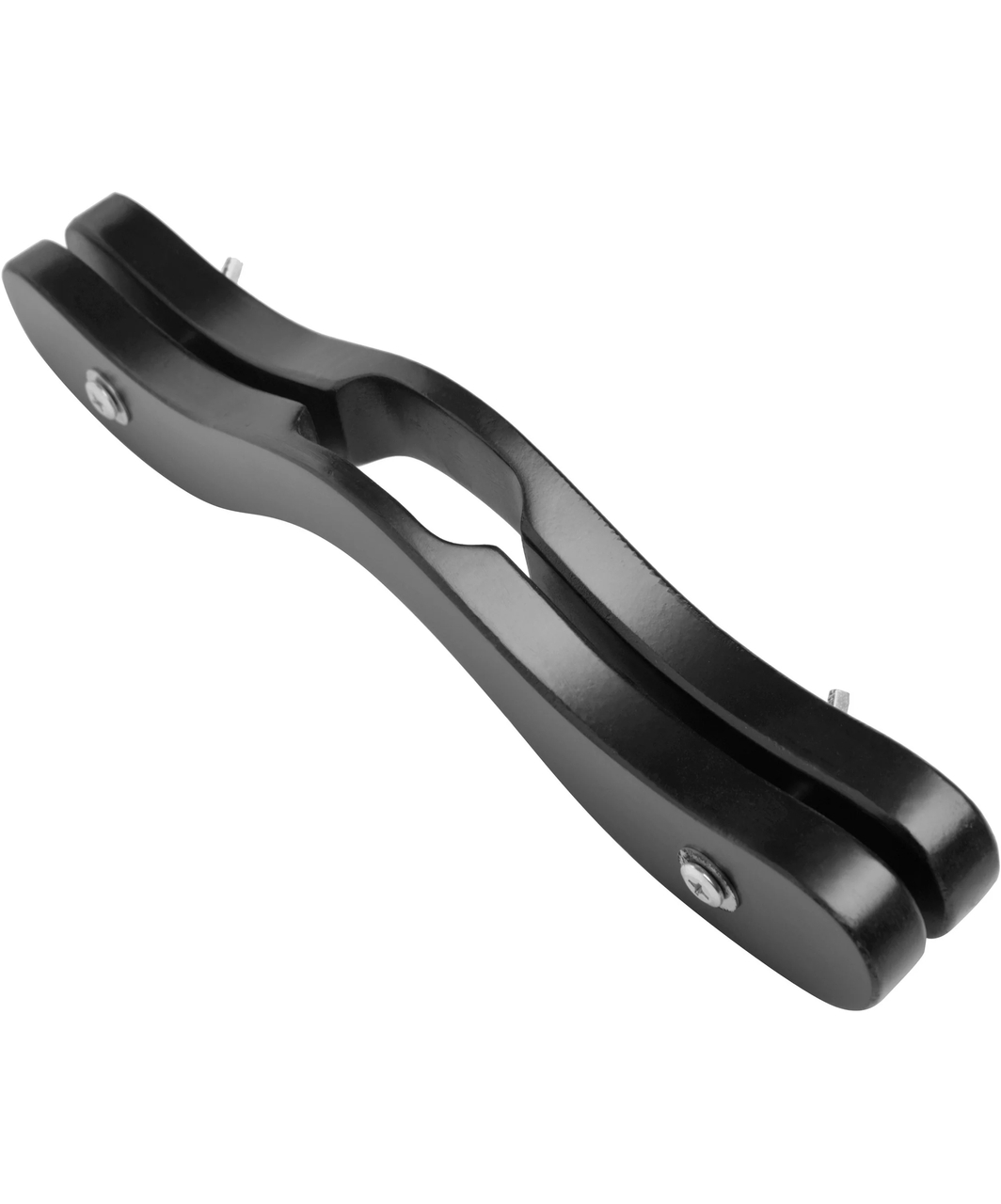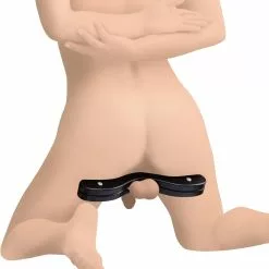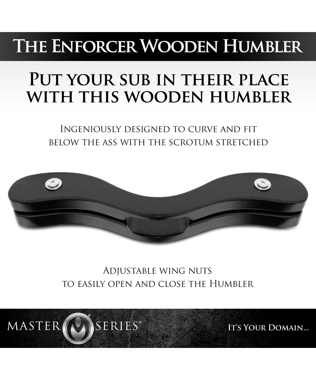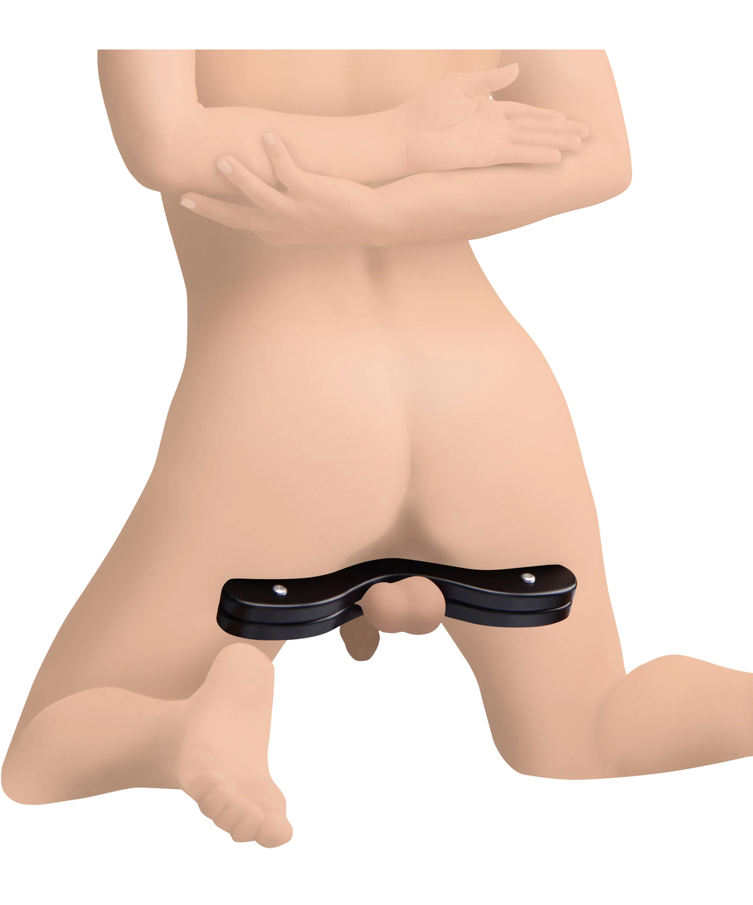 Black wooden testicle pillory – fully adjustable with two compression screws at either side.