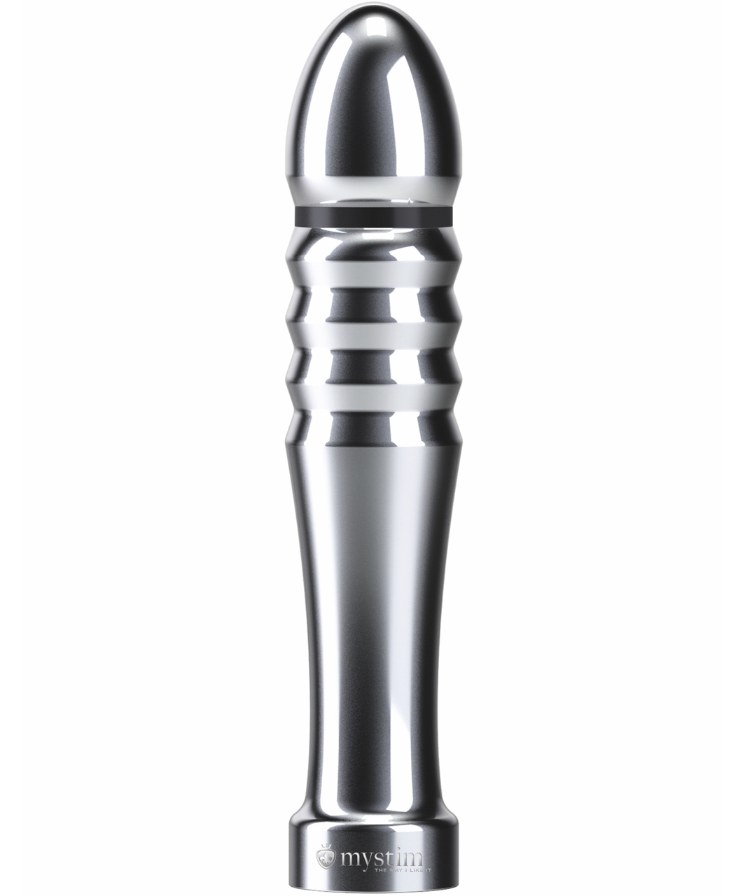 Bi-polar e-stim dildo made of hand polished medical aluminium with all-surface conductivity and grooves. Stimulates vagina and rectum intensively even without current. Chill it under cold water or put it in the freezer for ≈ 2–3 min. for a cool sensation. Run the dildo under warm water to heat things up! Aluminium will retain the temperature, allowing you to play with its sensation against the skin.