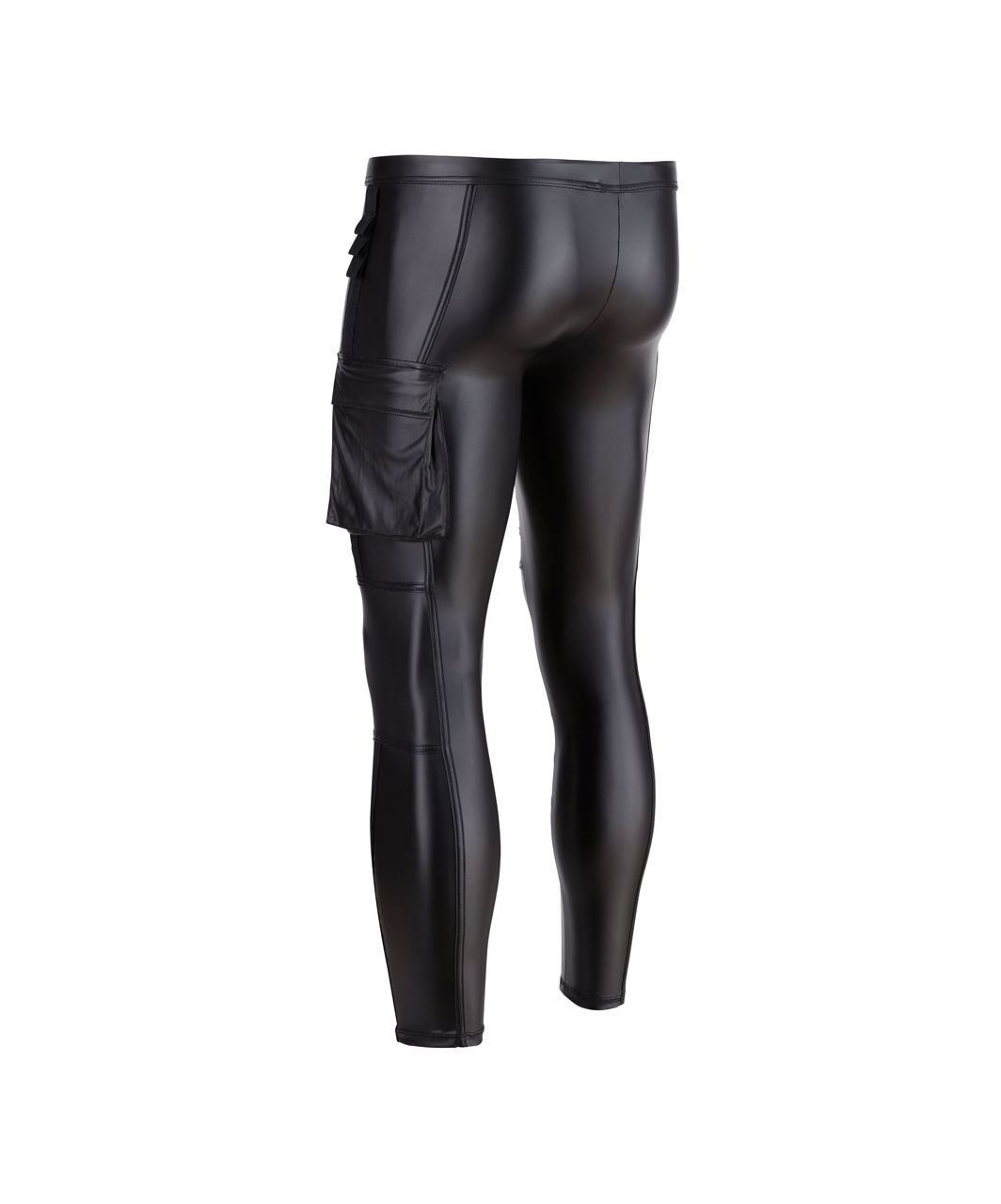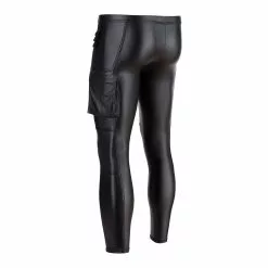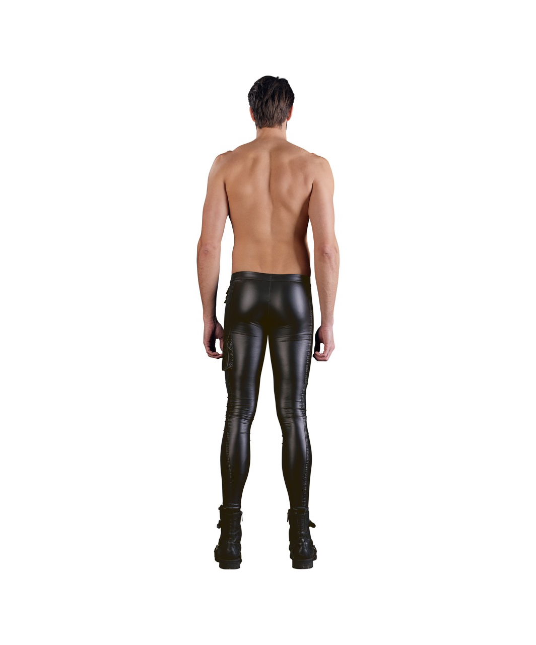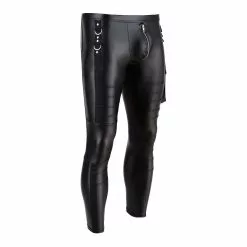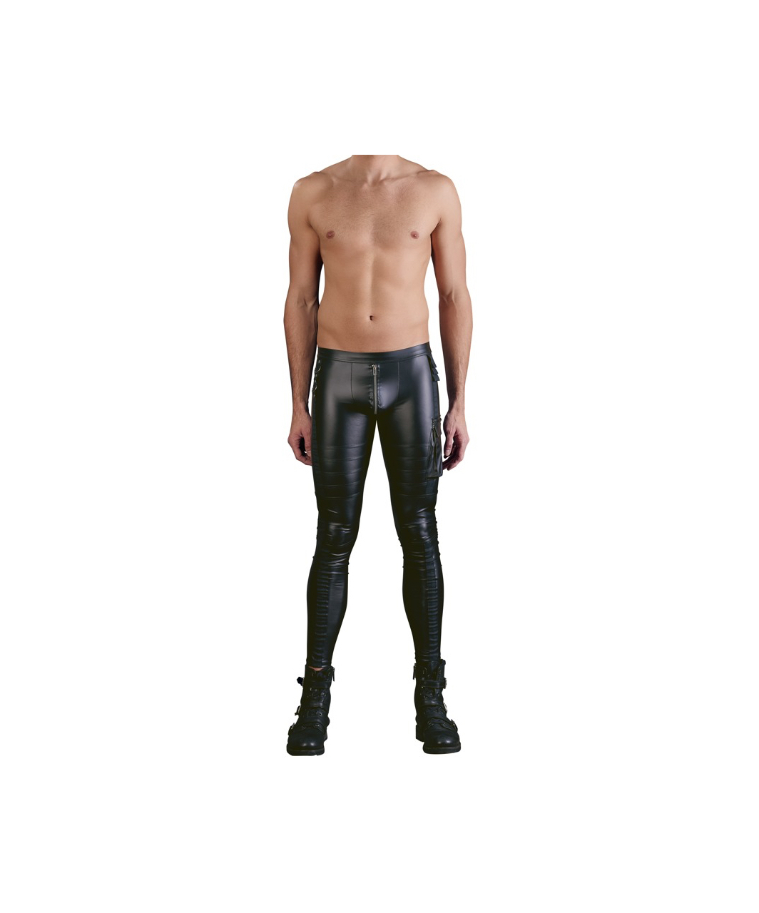 Pleasantly elastic and comfortable, black matte look slim-fit pants in rock-‘n’-roll style.