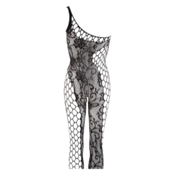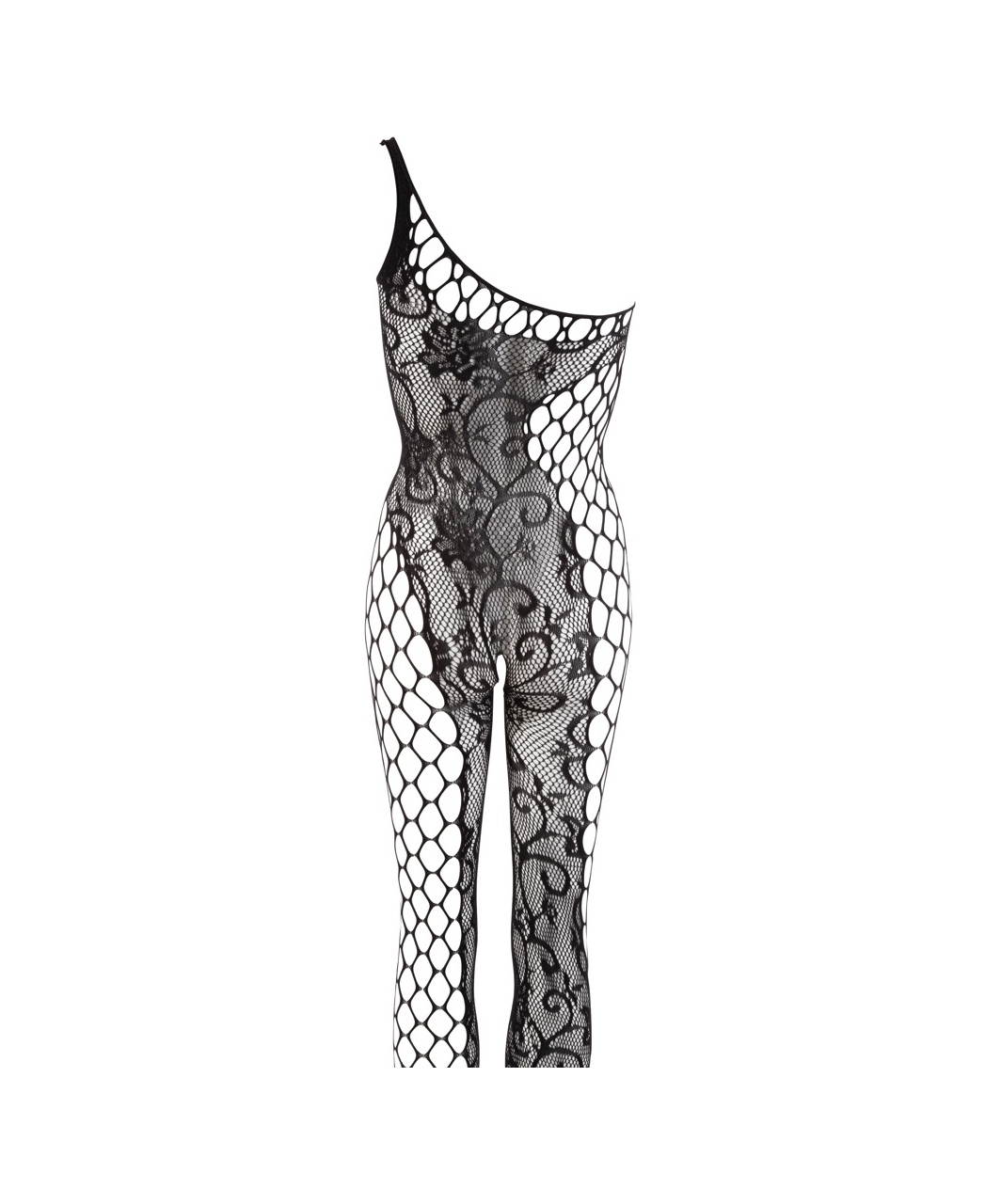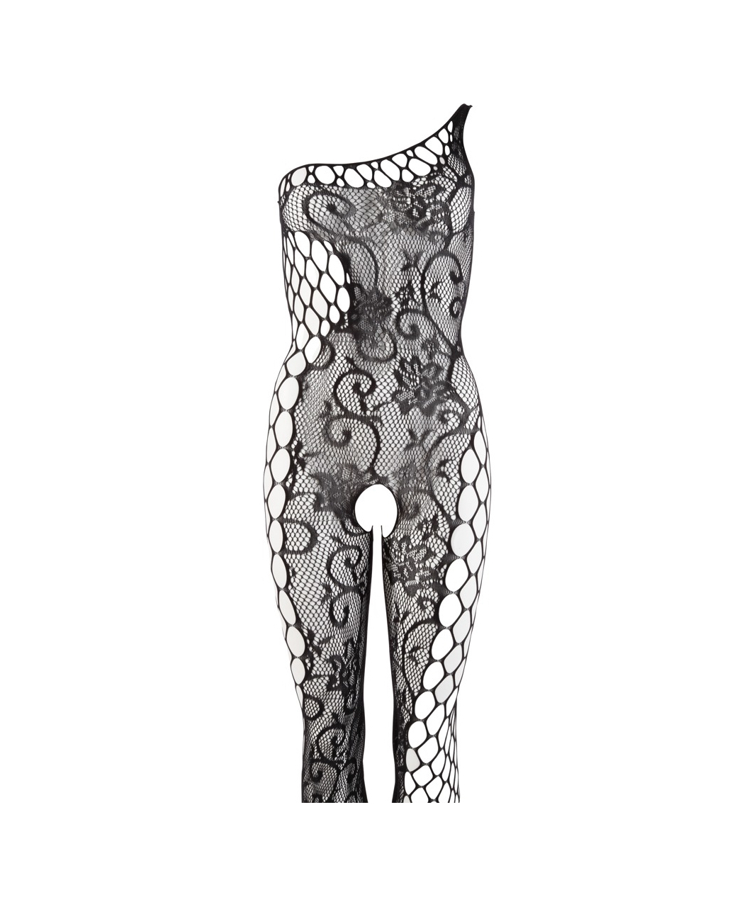 Black seamless crotchless one shoulder bodystocking. Full foot and reinforced toes. Unisize (S–L).