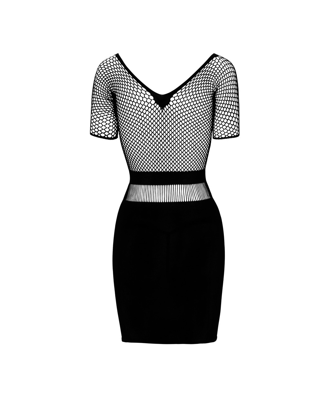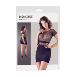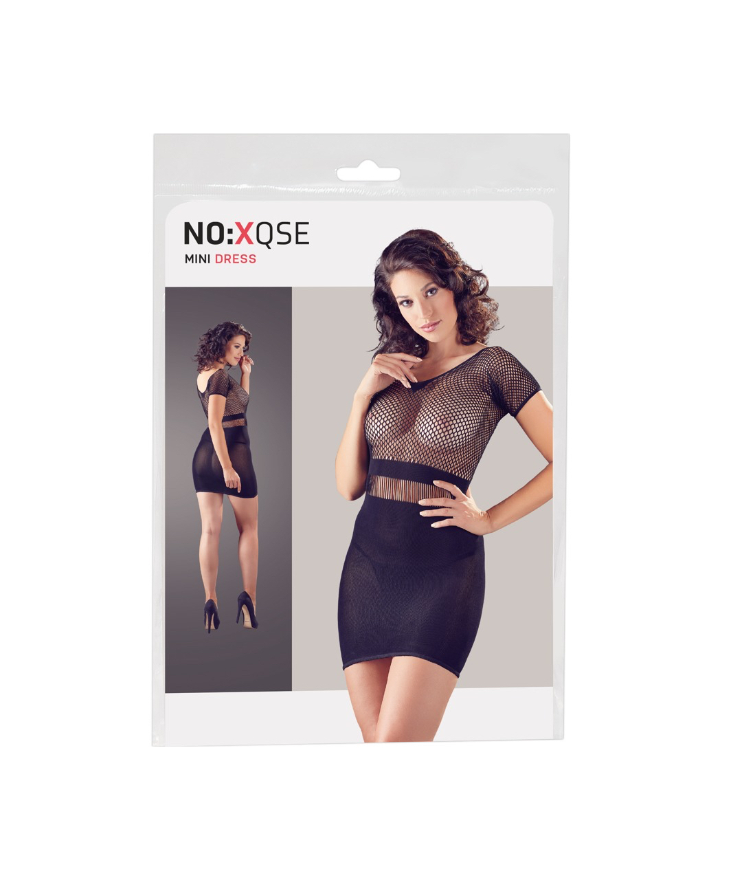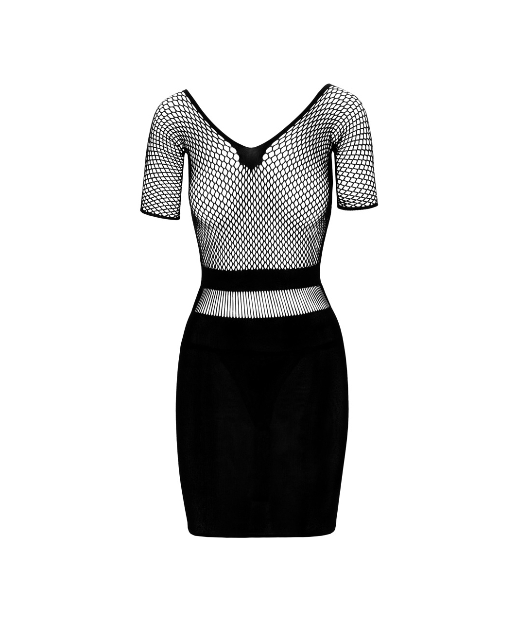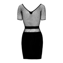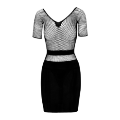 Black seamless net mini dress – erotic see-through top with opaque waistband and skirt. Matching G-string included. Unisize (S–L).