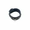 The navy blue set of 4 long nylon straps and 4 leatherette straps with gold-coloured rings – a part of exquisite Bondage Couture Collection.
