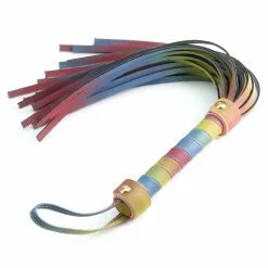 Krāsaina, mazliet spīdīga, mākslīgās ādas pātaga ar cilpu – daļa no Spectra Bondage izlases, kas ietver dažādus piederumus gaumīgām BDSM rotaļām un fotosesijām.