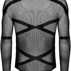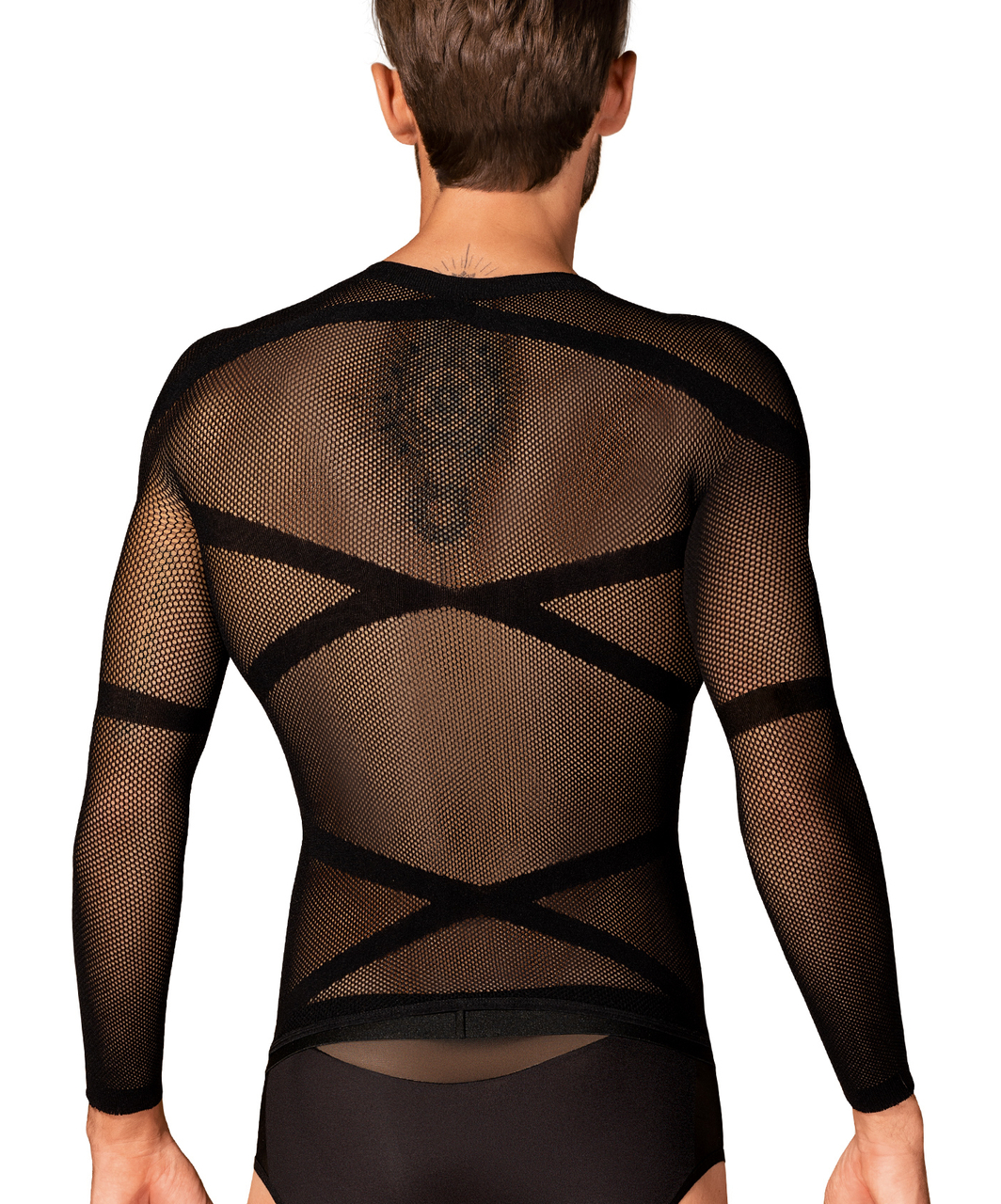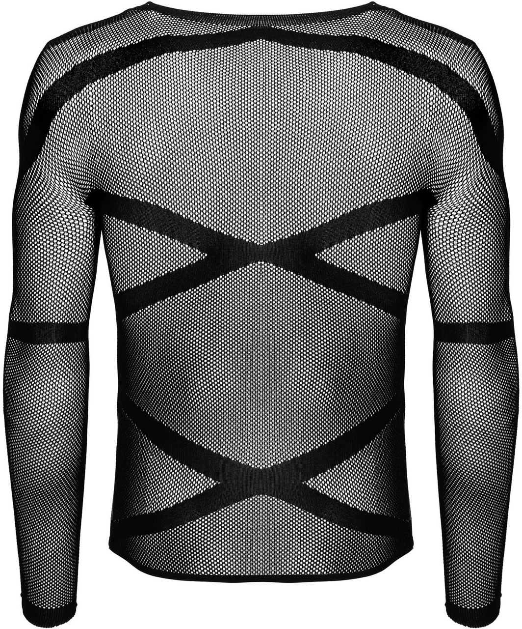 Black, elastic knit long sleeved shirt with a geometric pattern. Unisize (S–L).