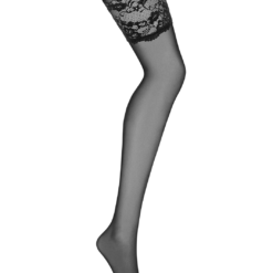 Black sheer suspender stockings with wide lace. Without garter belt.
