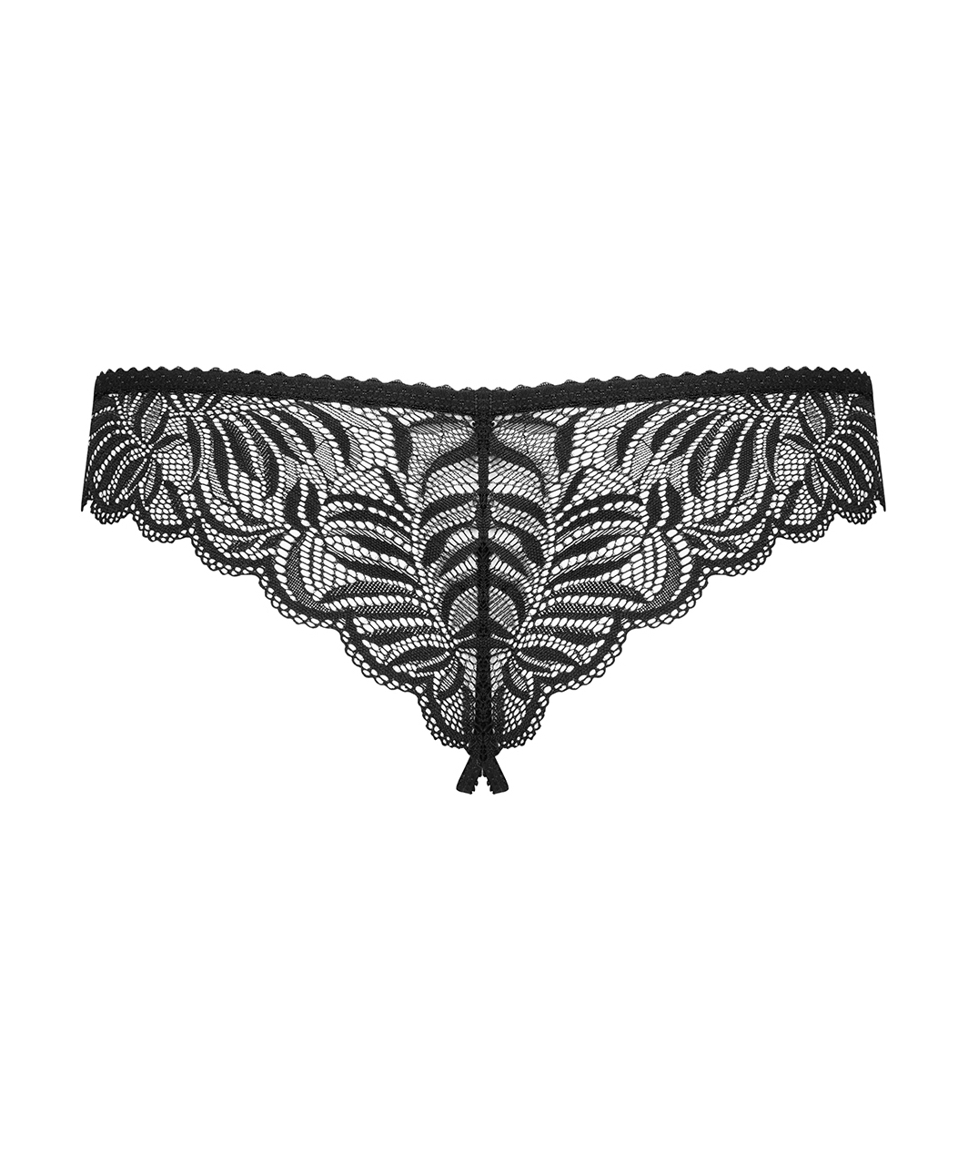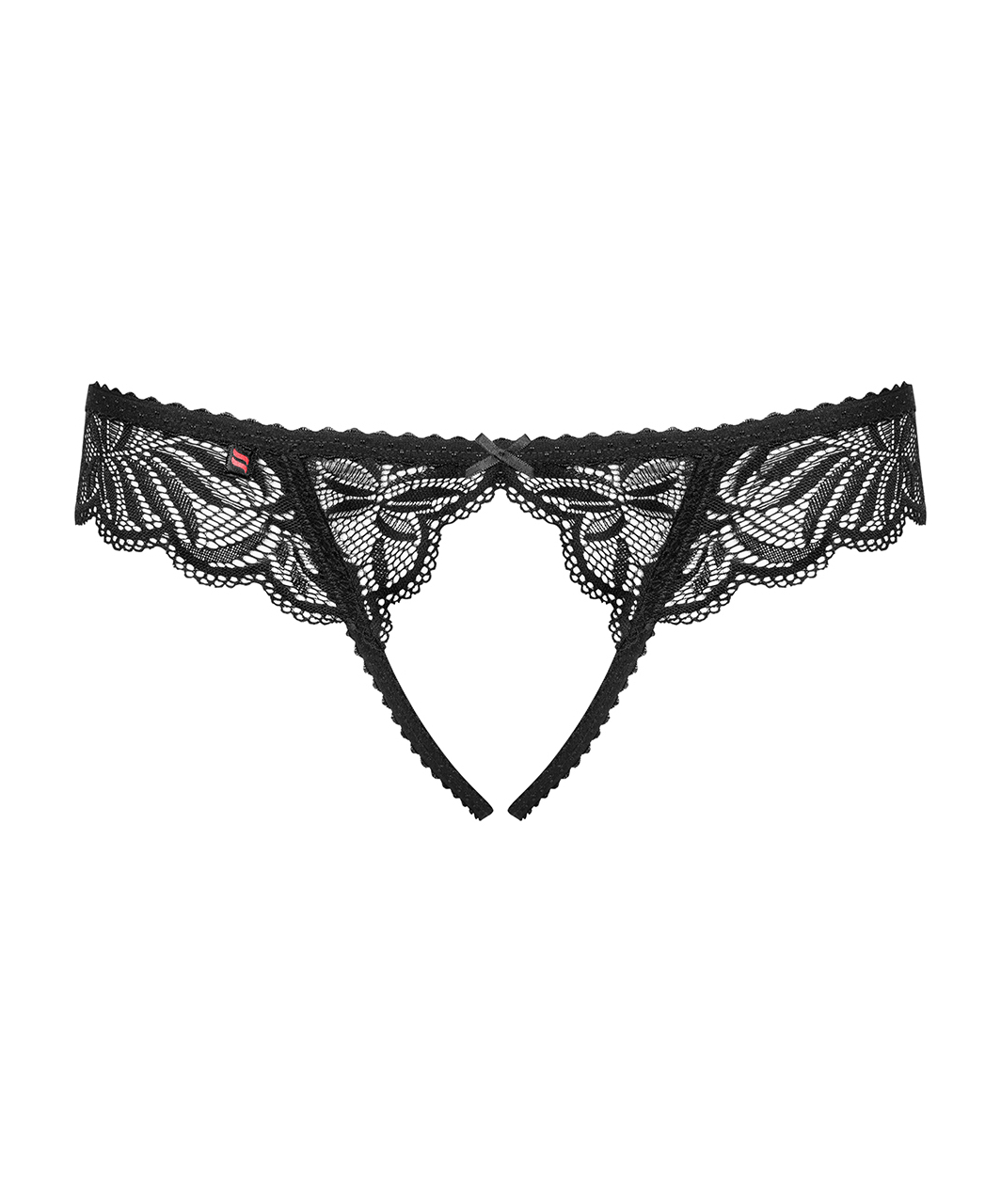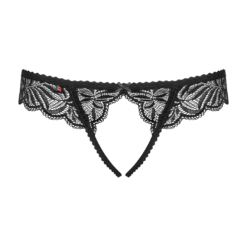 Black lace crotchless thong.