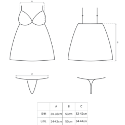 Dark blue satin babydoll with lace top and slightly pudded, underwire cups. Adjustable straps with embroidery and hook closure. Matching G-string included.