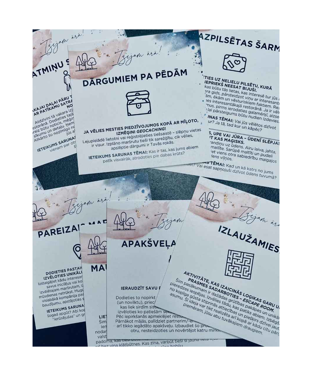 Katram no jums būs aploksne ar 26 randiņu ideju kartītēm – randiņa datums partnerim nav zināms, tāpēc tie ir 26 pārsteigumi priecīgu atmiņu radīšanai kopā!