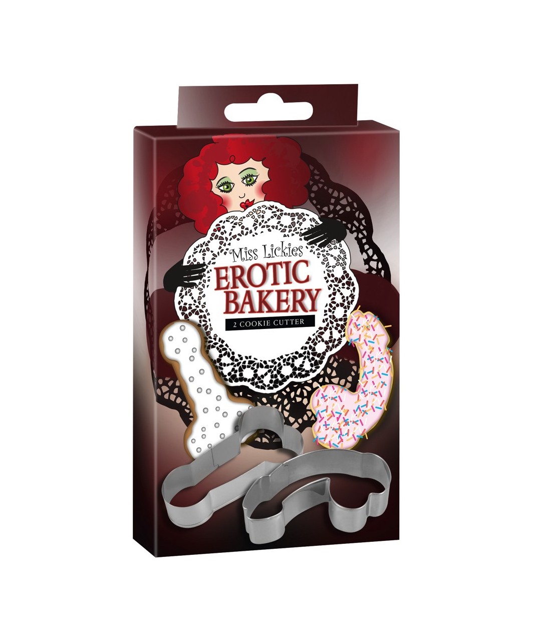 Two metal cookie cutters for penis-shaped cookies. Length approx. 10 cm. Material: stainless steel.