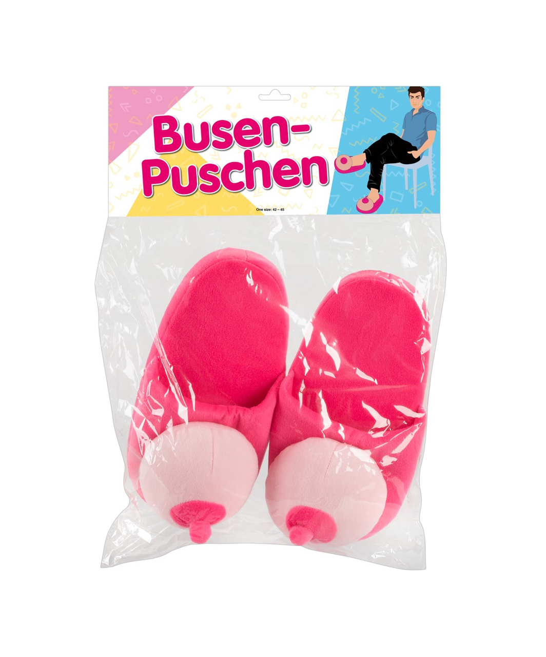 Pink plush boob slippers. Unisize – fits EU sizes 42–45.