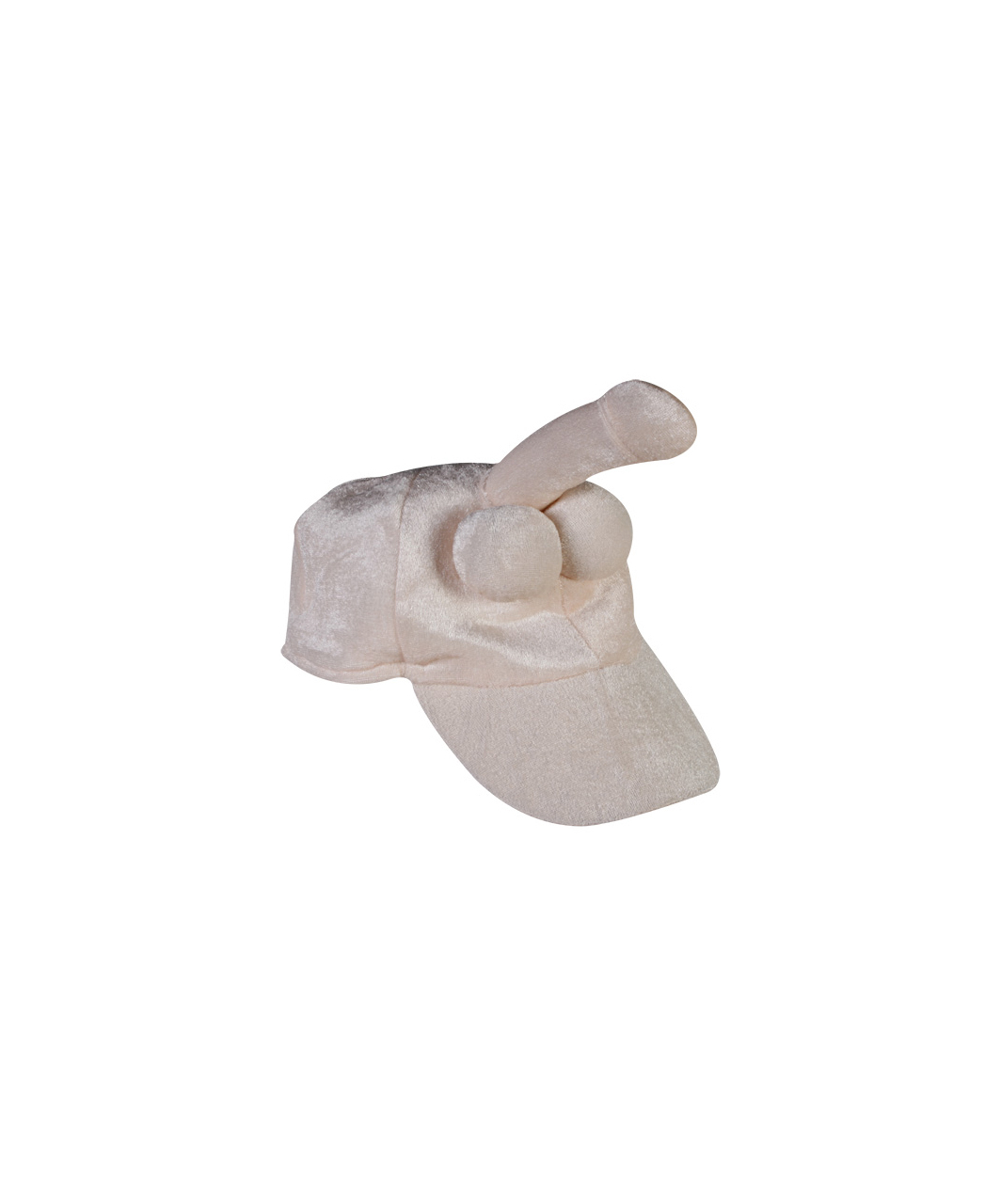 Funny plush cap with pronounced penis and testicles on top. 100% polyester. Hand wash only.
