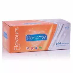 3 pcs pack contains: 1 red condom with strawberry flavour, 1 green condom with mint flavour and 1 blue condom with blueberry flavour.