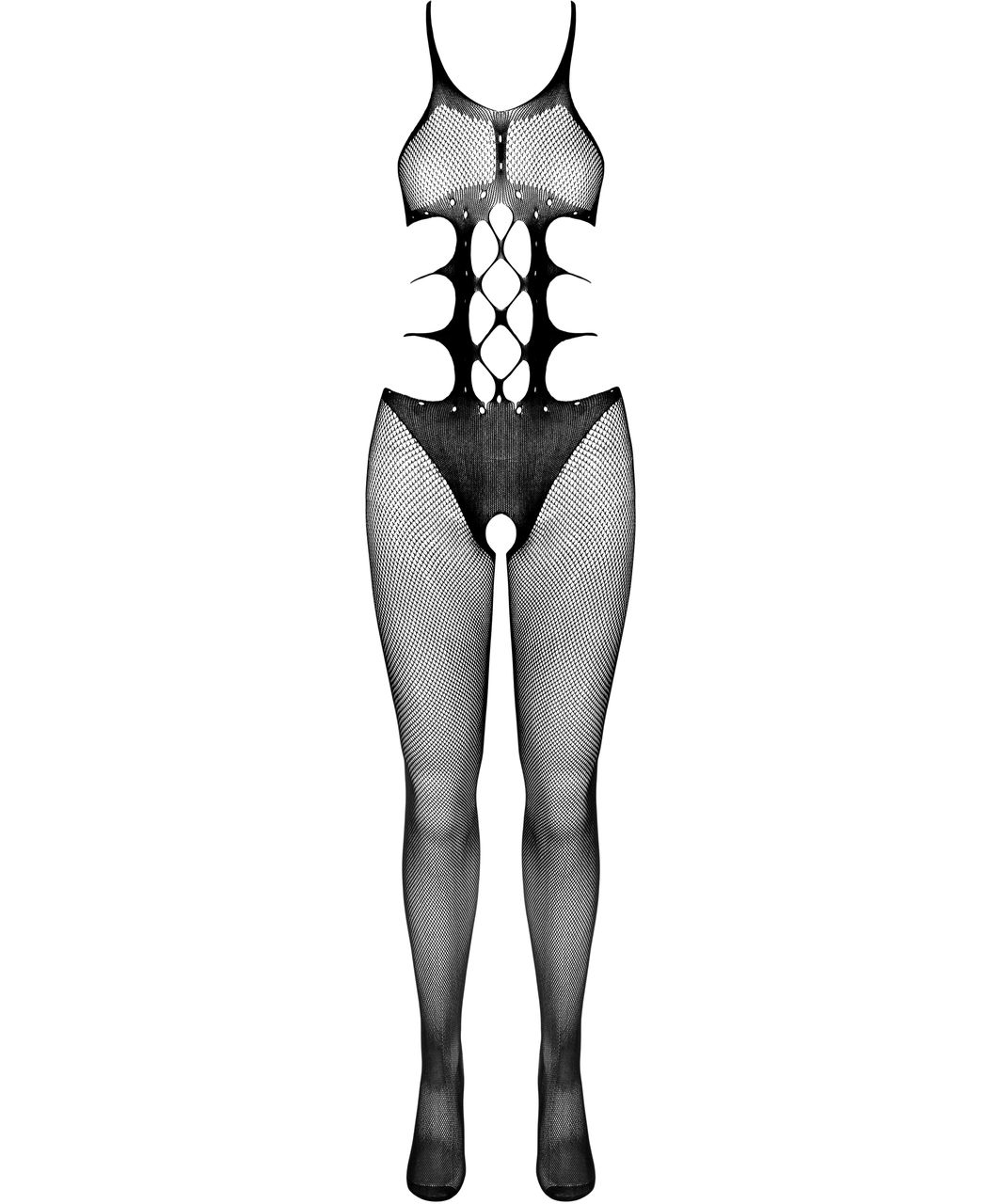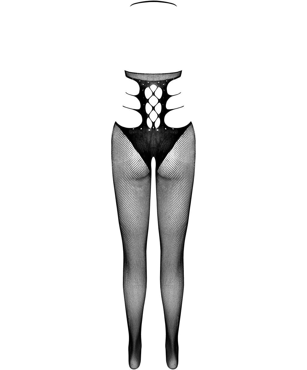 Crotchless open back net bodystocking with cutouts. Unisize (S–L).