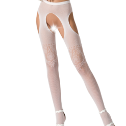 Crotchless net tights with floral pattern. Unisize (S–L).