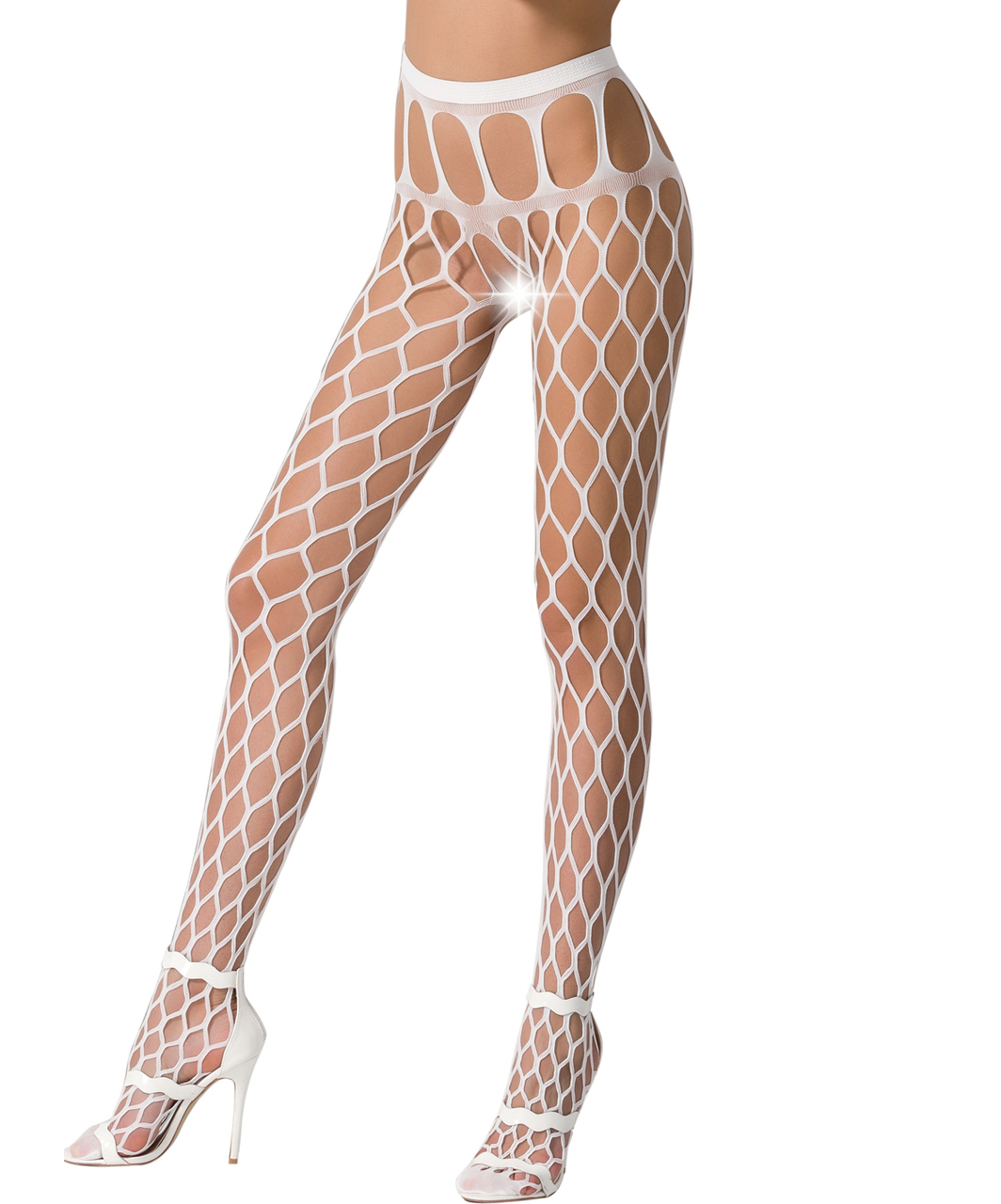 Crotchless diamond net tights with cutouts. Unisize (S–L).