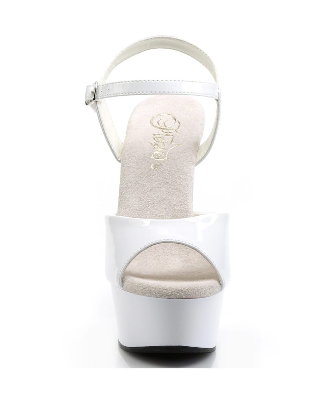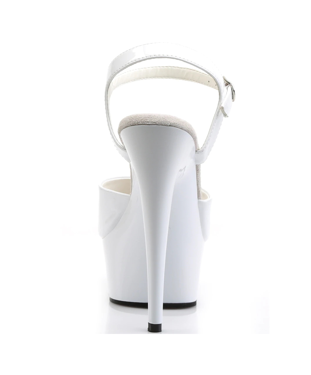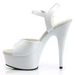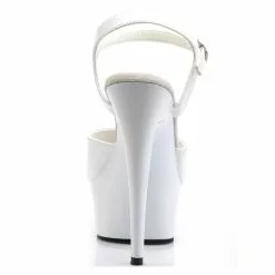 White platform shoes, 15 cm stilettos with white straps and soft inner sole.