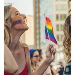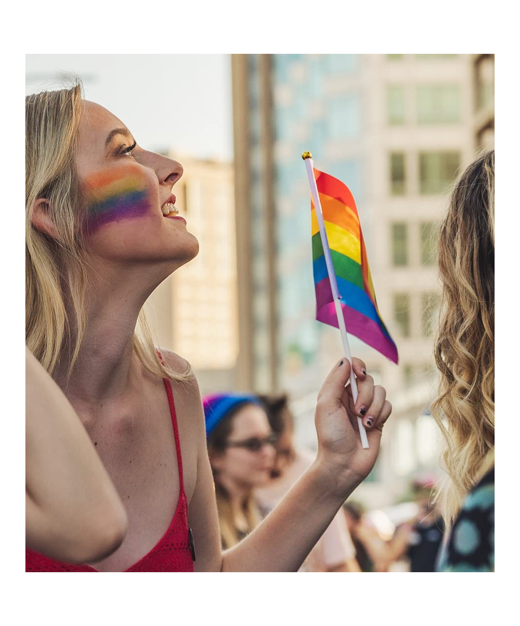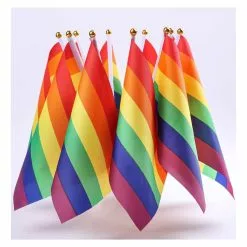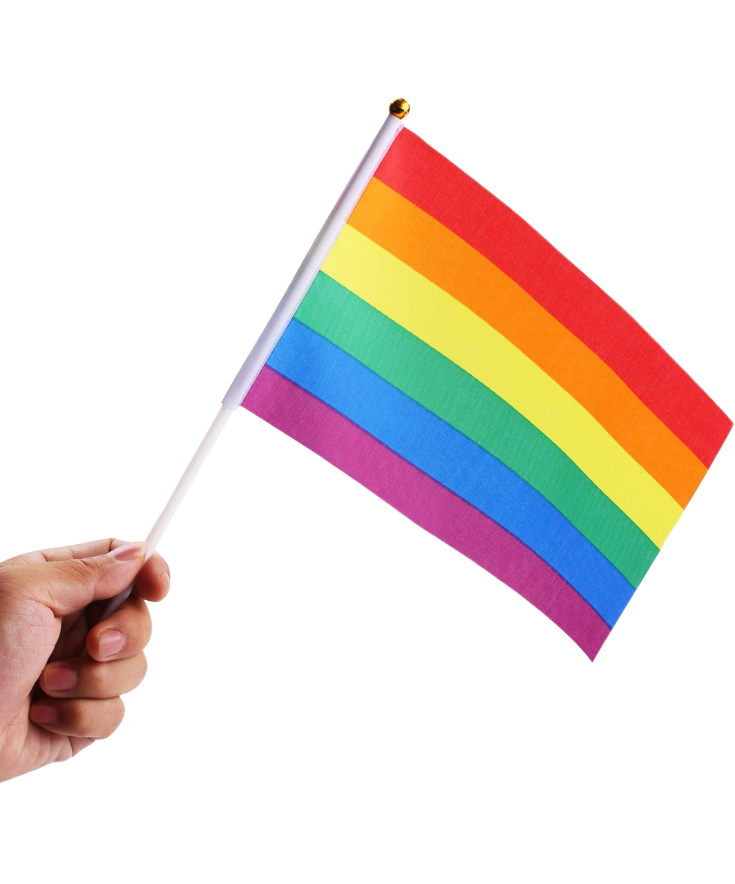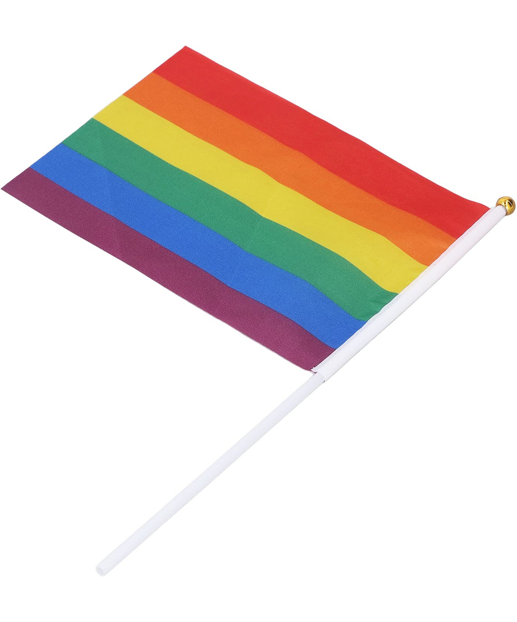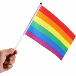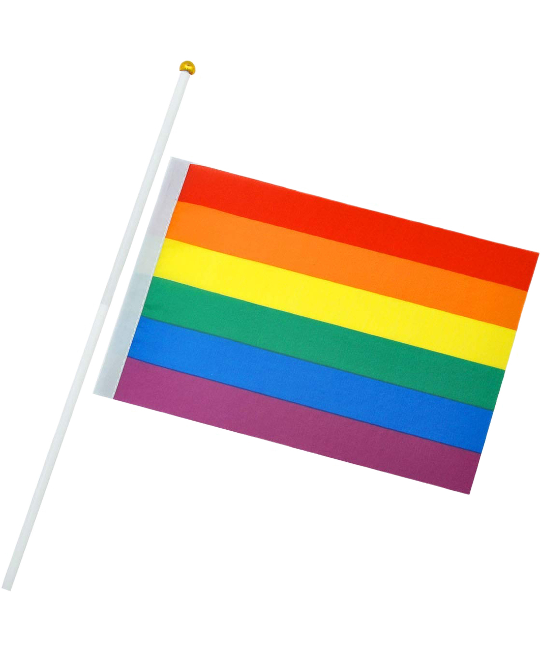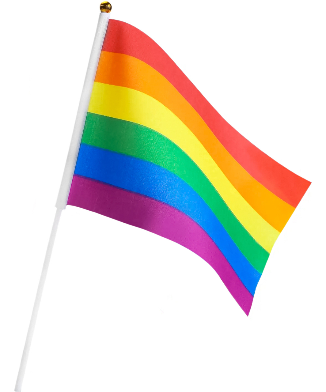 LGBT flag, hand-held, with white stick. For the LGBTQ+ community and allies – all who celebrate freedom, love and diversity.