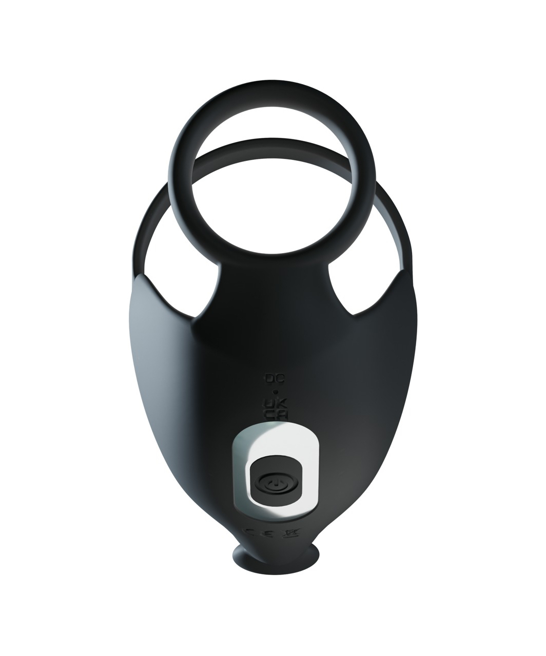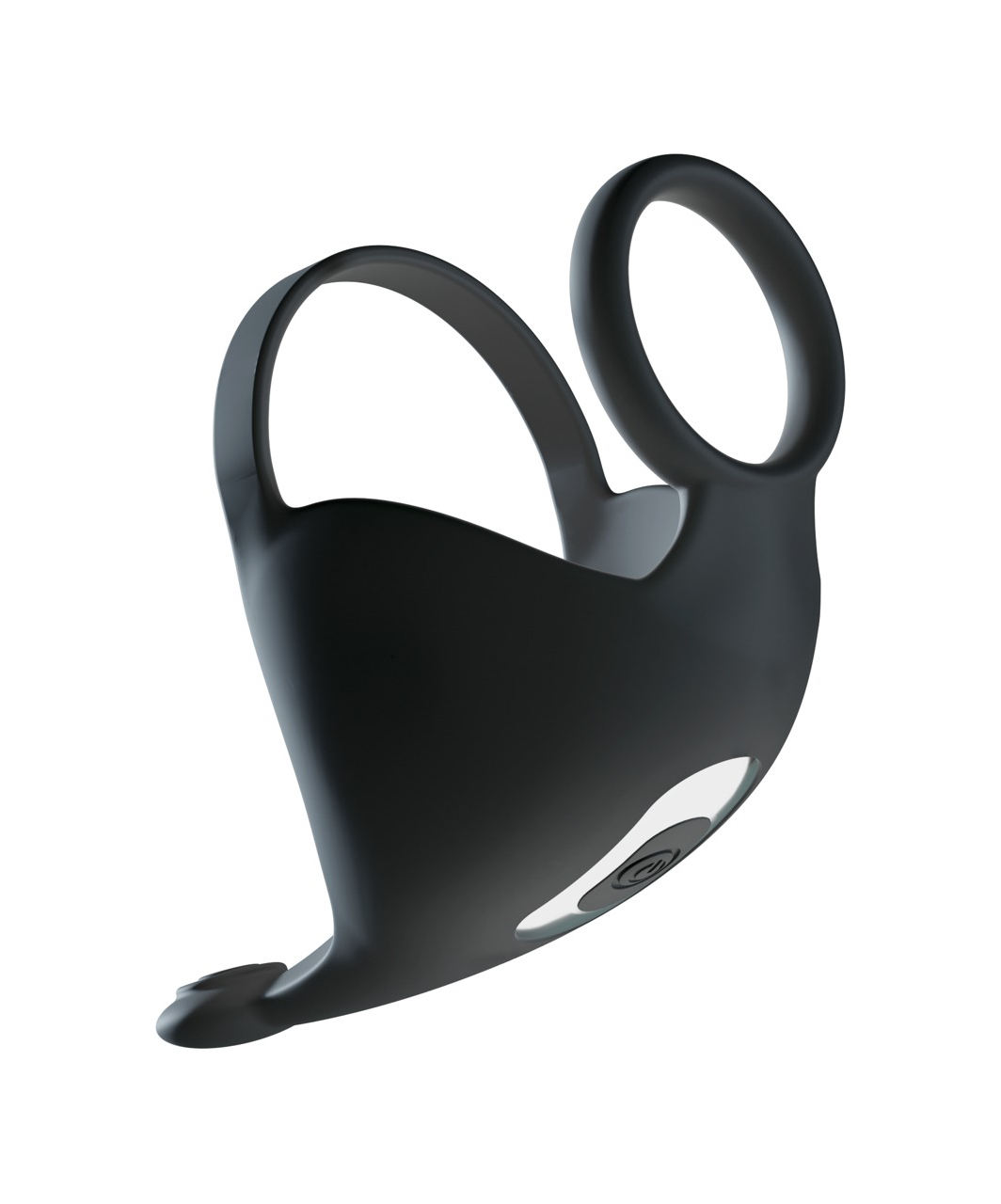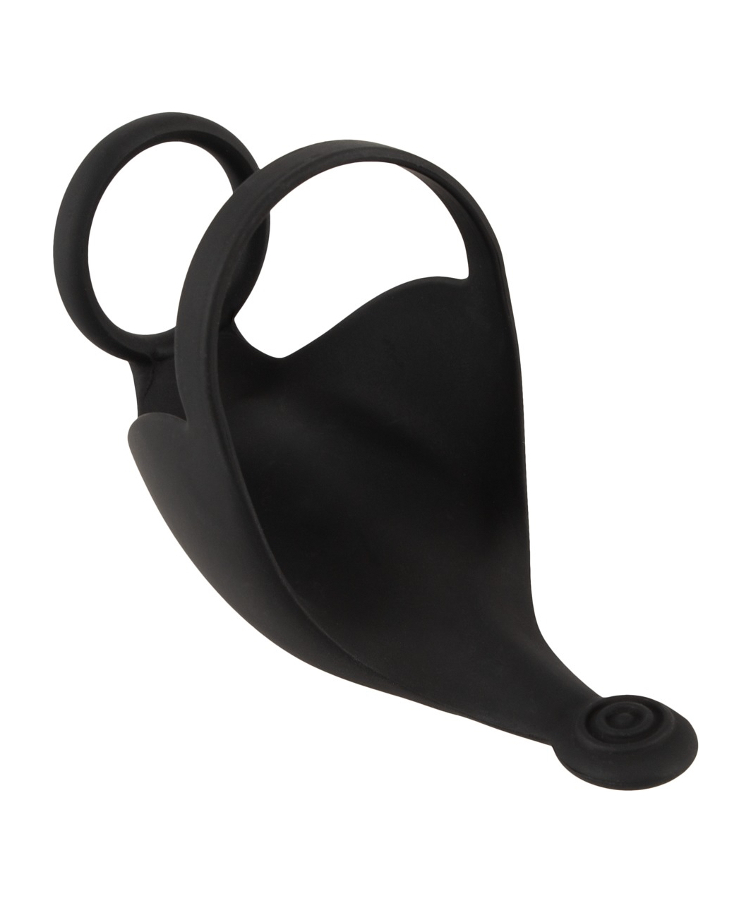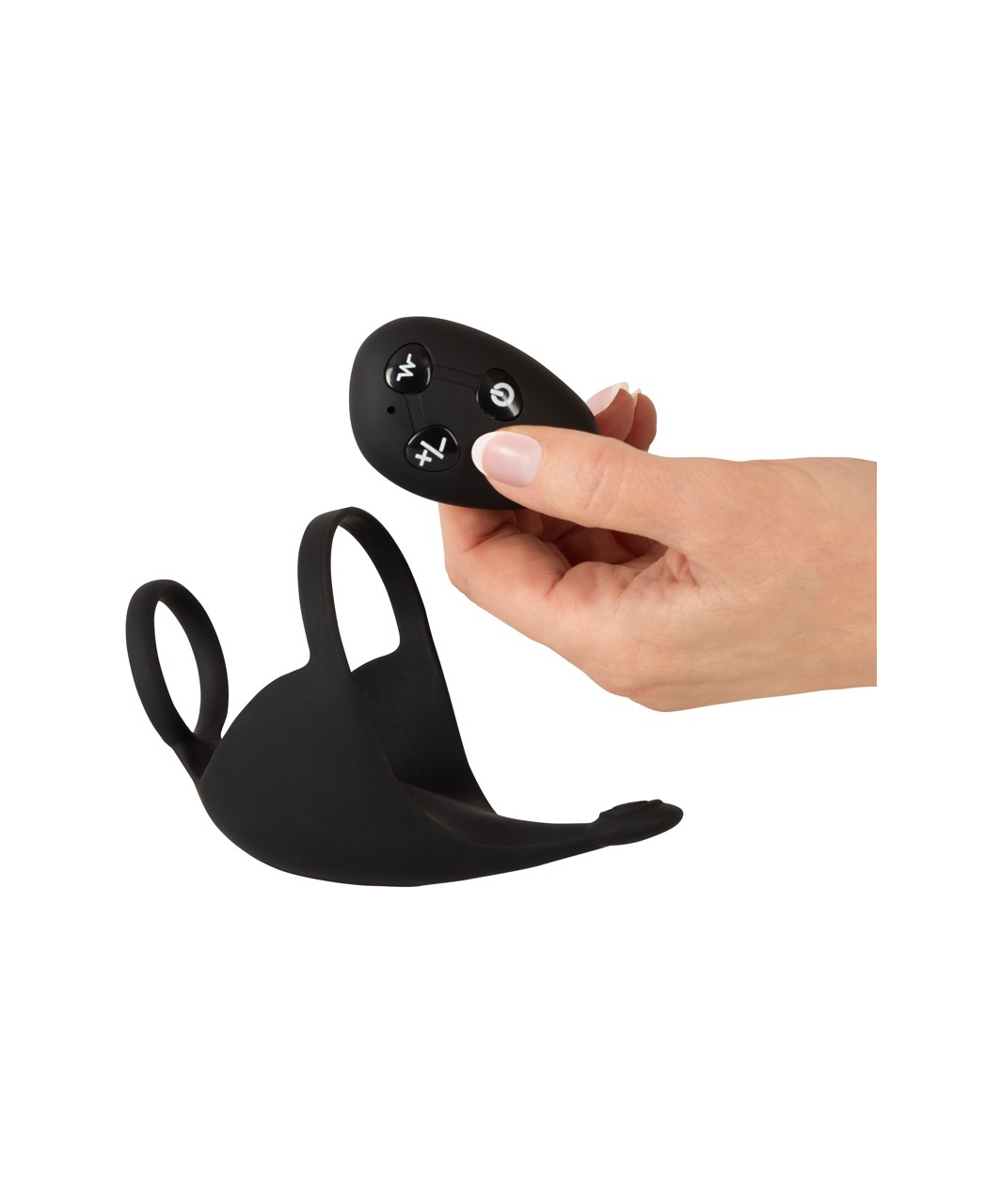 Black, silky smooth silicone testicle stimulator with flexible cock ring. Enjoy the variety of 10 vibration modes and switch between them using the built in button or the wireless remote which works up to 10 m distance.