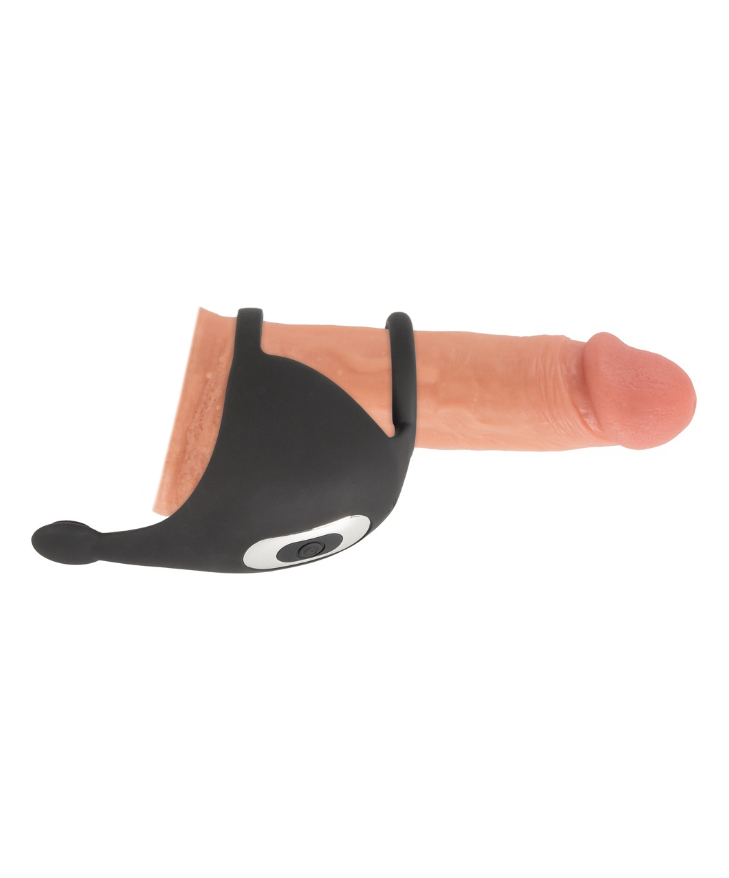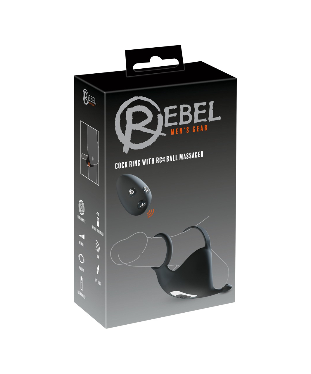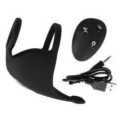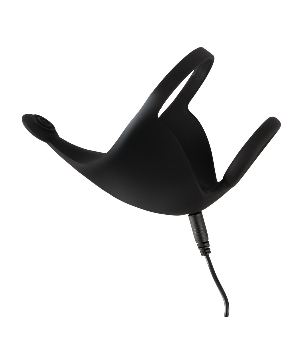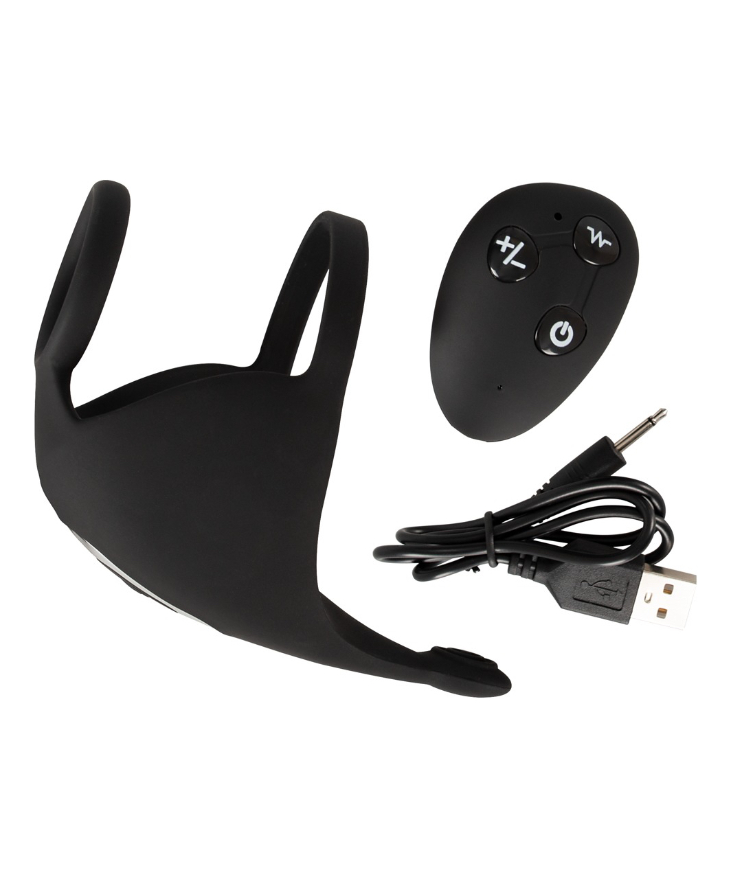Black, silky smooth silicone testicle stimulator with flexible cock ring. Enjoy the variety of 10 vibration modes and switch between them using the built in button or the wireless remote which works up to 10 m distance.