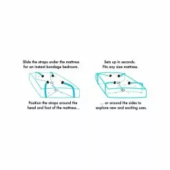 Make any bed your bondage playground with this easy to install kit. No bed posts required! Four soft cuffs are attached to 152 cm long adjustable straps. Also includes a 152 cm adjustable connector strap for a secure fit.