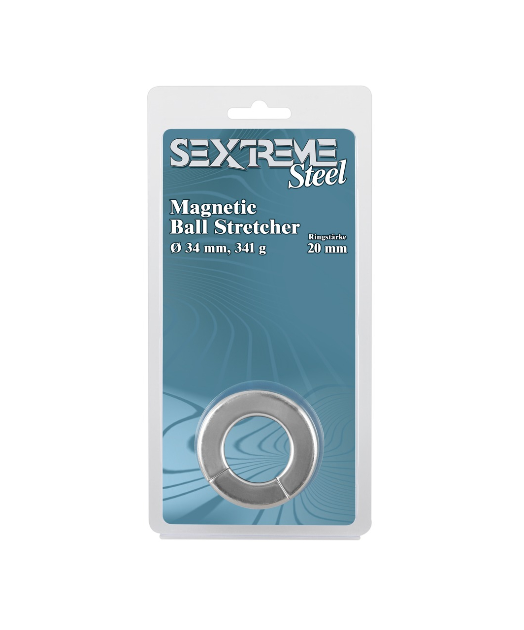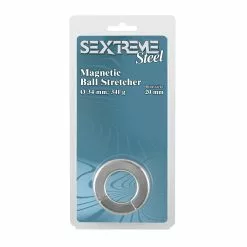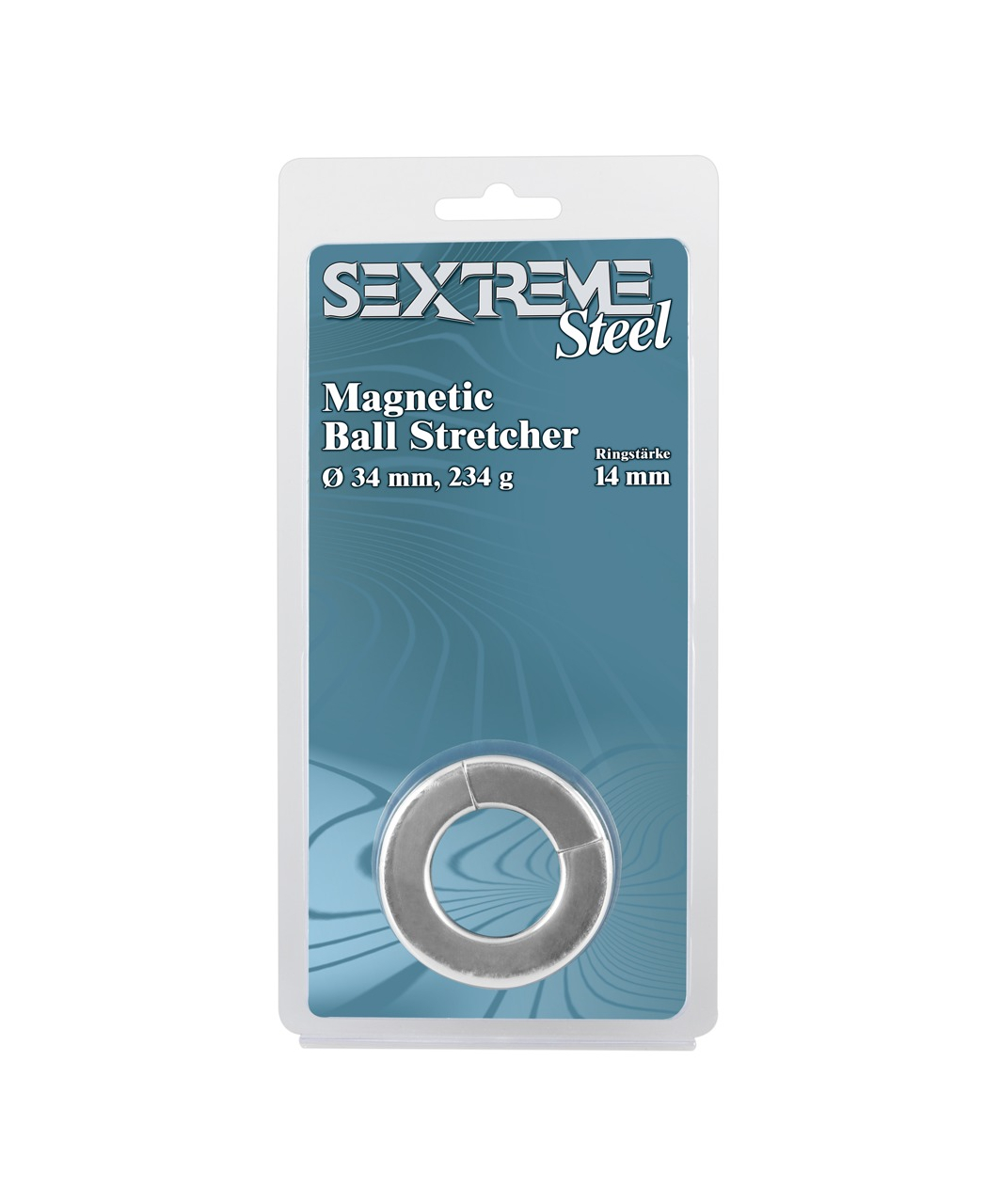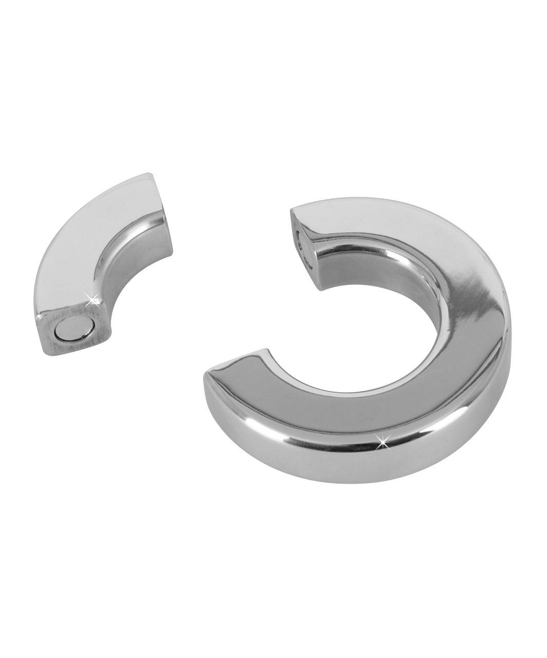 Silver-coloured cock ring/scrotum stretcher made of stainless steel. A stretcher’s task is to go around the top of the testicles so that it can stretch/lengthen the scrotum. The testicles are pushed down into the scrotum. It can go from a nice arousing feeling to a strong pulling feeling with an intentional small or large amount of pain.