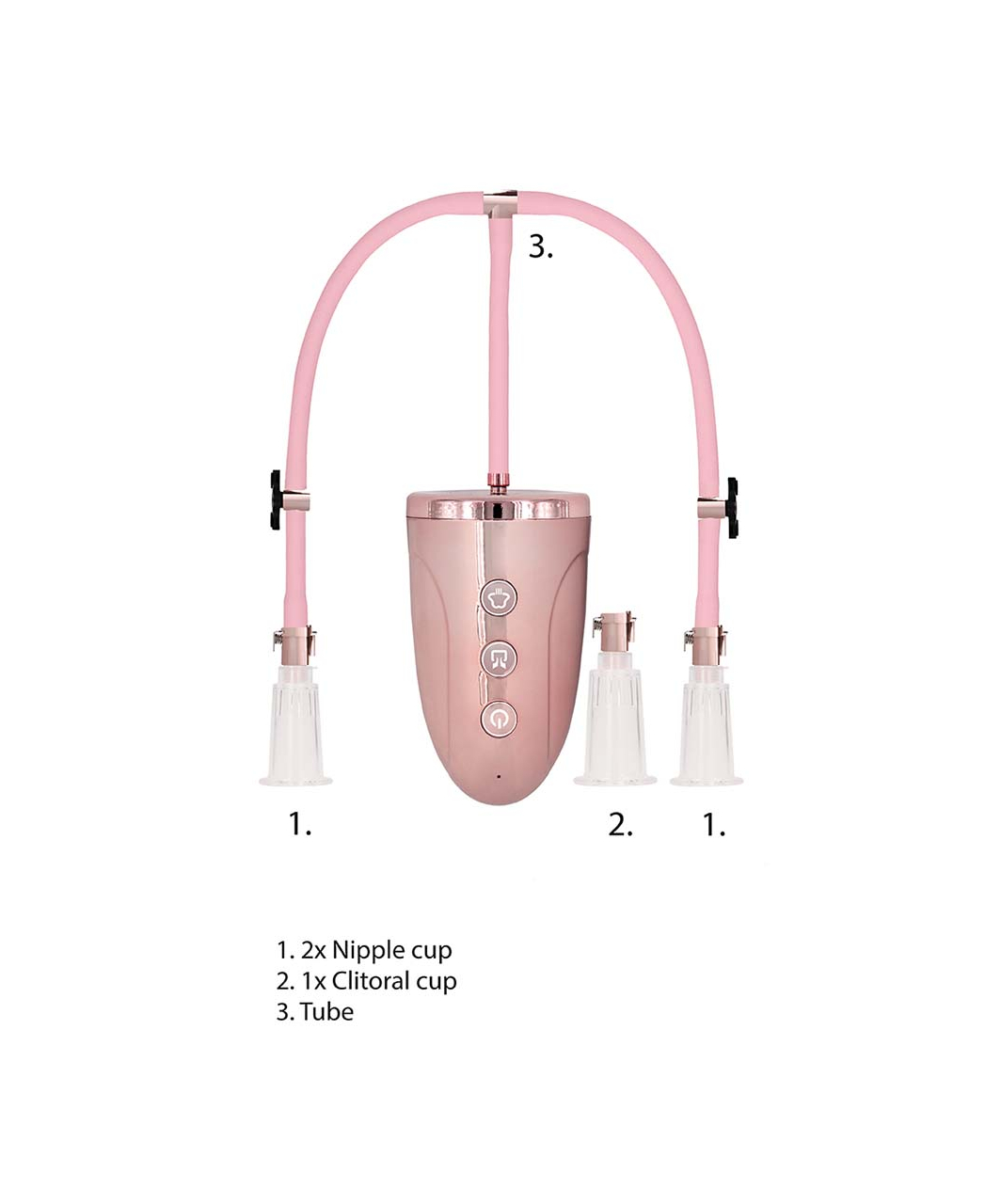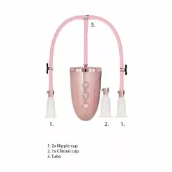 Feel the stimulation of suction with these Clitoral & Nipple Pumps. Use this pump to increase sensation in your clitoris, or even your nipples, enhancing pleasure. Easy to use to place the cylinder over your desired erogenous zone and turn on the pump to draw blood into the area. You will feel suction as your clit increases temporarily in size and sensitivity. You can easily release the pressure in the cylinder by pressing the release valve on the bulb. You can also detach the industrial grade acrylic cylinder from the pump with the simple clip system, leaving your clit suctioned up in the cylinder. Savor unique and all-new pleasure sensations with this simple pumping system. Compatible with all types of lubricant. Use it no longer then 20-30 minutes for both breasts. The kit will have 3 cups, 1 hose with 2 ends and 1 rechargable pump.