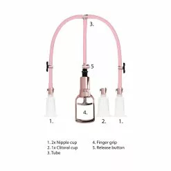 Feel the stimulation of suction with these Clitoral & Nipple Pumps. Use this pump to increase sensation in your clitoris, or even your nipples, enhancing pleasure. Easy to use to place the cylinder over your desired erogenous zone and squeeze the pump to draw blood into the area. You will feel suction as your clit in- creases temporarily in size and sensitivity. You can easily release the pressure in the cylinder by pressing the release valve on the bulb. You can also detach the industrial grade acrylic cylinder from the pump with the simple clip system, leaving your clit suctioned up in the cylinder. Savor unique and all-new pleasure sensations with this simple pumping system. Compatible with all types of lubricant. Use it no longer then 20-30 minutes for both breasts The kit will have 3 cups, 1 hose with 2 ends and 1 hand pump.