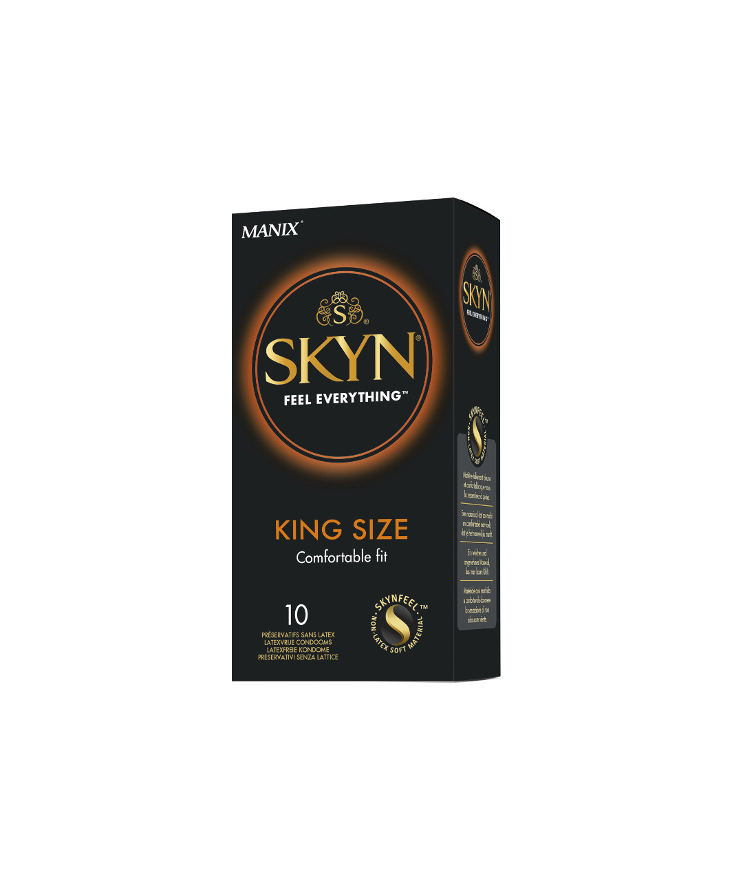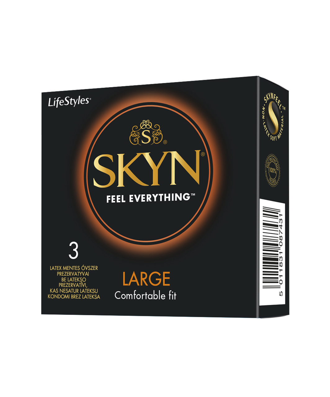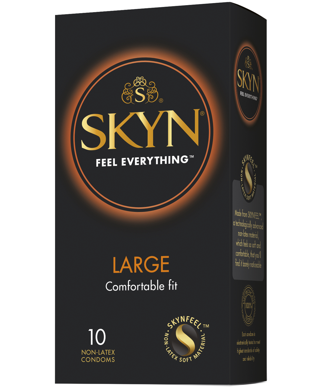 Thin, transparent, cylindrical condoms made of synthetic Skynfeel material (polyisoprene). Lubricated with a silicone-based lubricant and with a reservoir. Tasteless and odorless; these condoms are especially suitable for people who have allergic reactions to latex.
