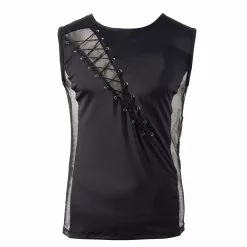 The combination of black opaque and mesh with rugged decorative lacing is extremely tempting. D-shaped metal rings are sewn onto the shoulders.