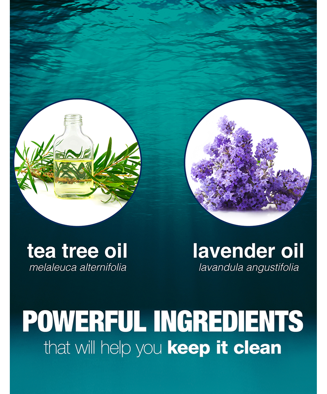 Ingredients: Water, Propylene glycol, Polysorbate 20, Phenoxyethanol, Melaleuca alternifolia leaf oil, Lavandula angustifolia oil.