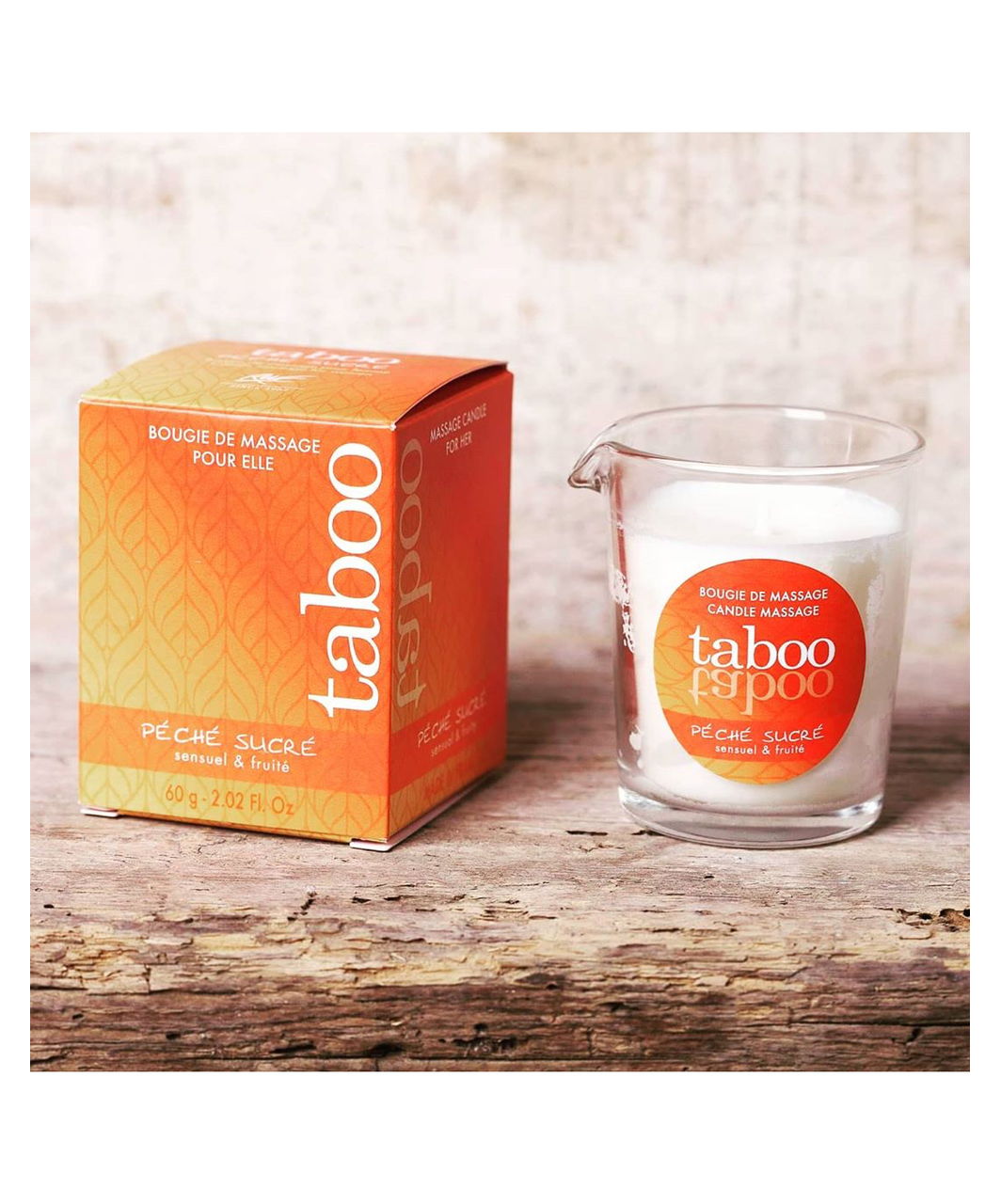The Péché Sucré massage candle has a delicious formula based on natural nectarine extract which gives it a subtly fruity, warm and sweet aroma. Light the candle for approx. 10 minutes – it will turn into a delightful warm fragrant massage oil. Enjoy a moment of well-being and relaxation, and savor with your partner the happiness of complete intimacy.