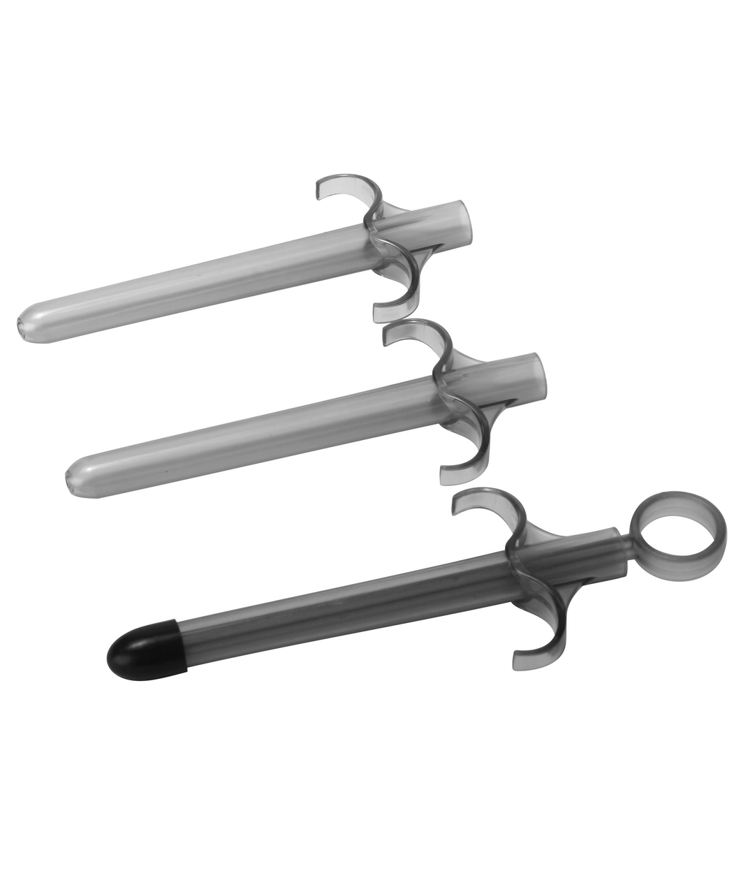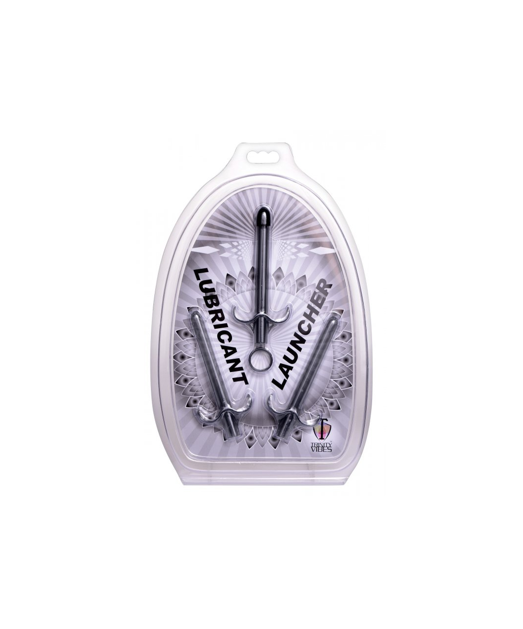 The lubricant launchers narrowed injector makes it easy to ease into anal or vaginal play by lubricating those hard to reach places. The convenient finger grips allow for precise insertion while the casing is easy to clean. With the convenient finger loops you can fill the launcher with whatever liquid you want and inject with one simple thrust. The launcher has a cap to prevent the liquid from spilling until the time is right for application. Two additional launcher tubes are included.