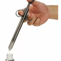 The lubricant launchers narrowed injector makes it easy to ease into anal or vaginal play by lubricating those hard to reach places. The convenient finger grips allow for precise insertion while the casing is easy to clean. With the convenient finger loops you can fill the launcher with whatever liquid you want and inject with one simple thrust. The launcher has a cap to prevent the liquid from spilling until the time is right for application.