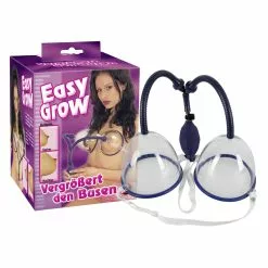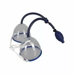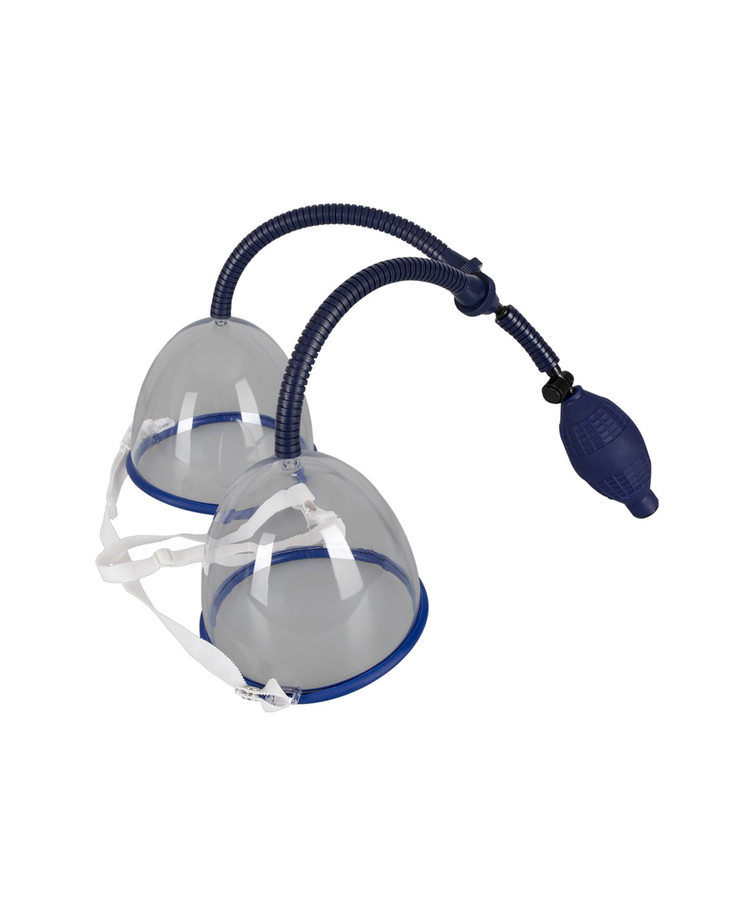 Two boob sucking cups secured with an adjustable stretch strap. The handy rubber pump provides a vacuum to make breast grow. Suitable for every cup size.