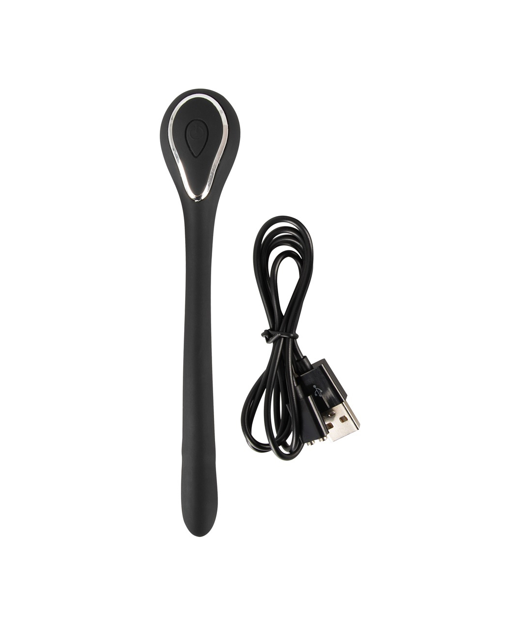 Black, flexible and rechargeable urethral vibrator with 10 vibration modes. Can be used in the bath or shower as it is waterproof.